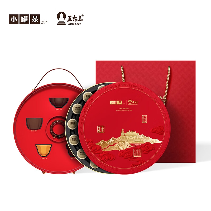 特级品质、8款好茶;五台聚福、喜庆红盒红罐;公证封签、可查可证可信