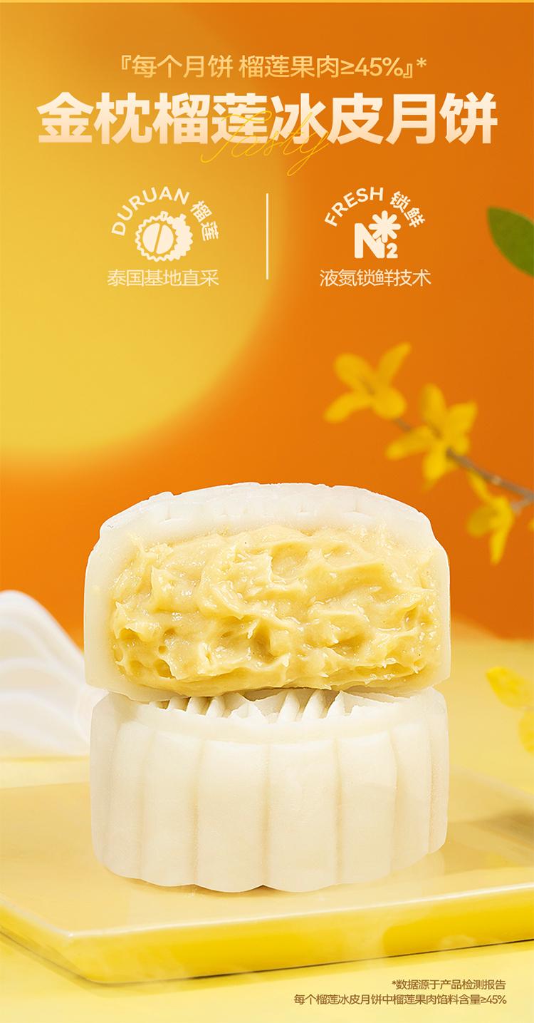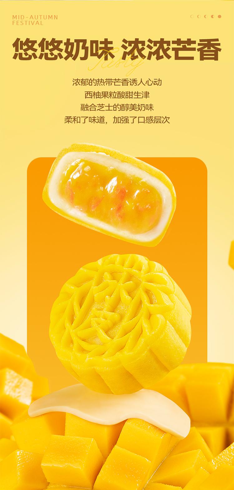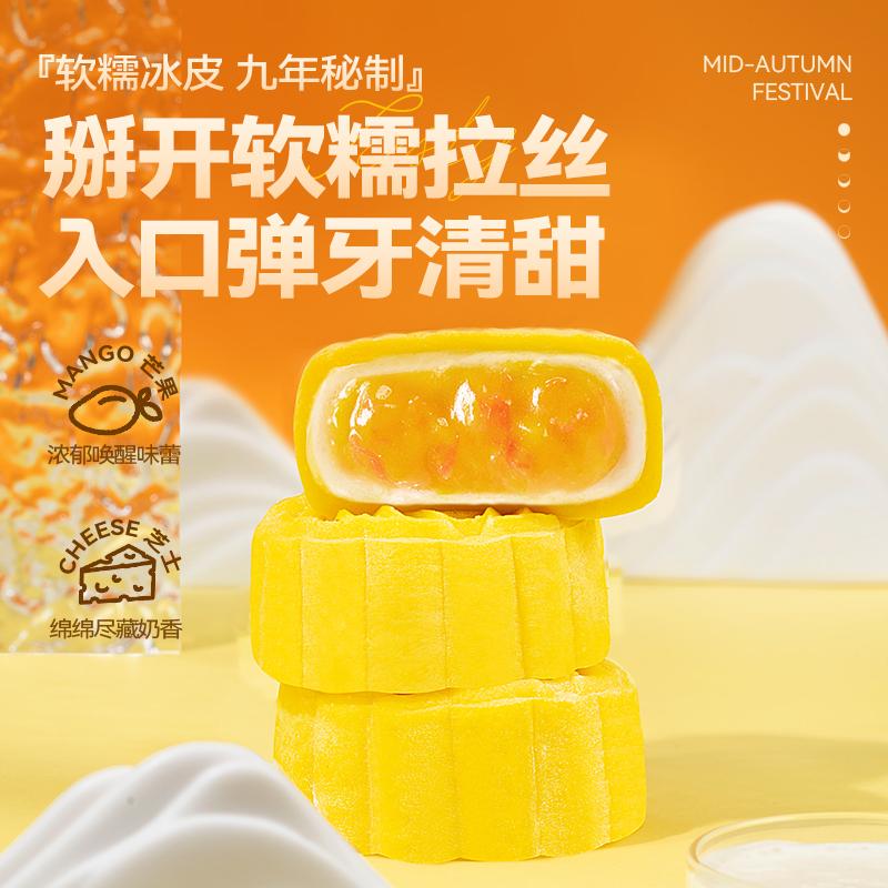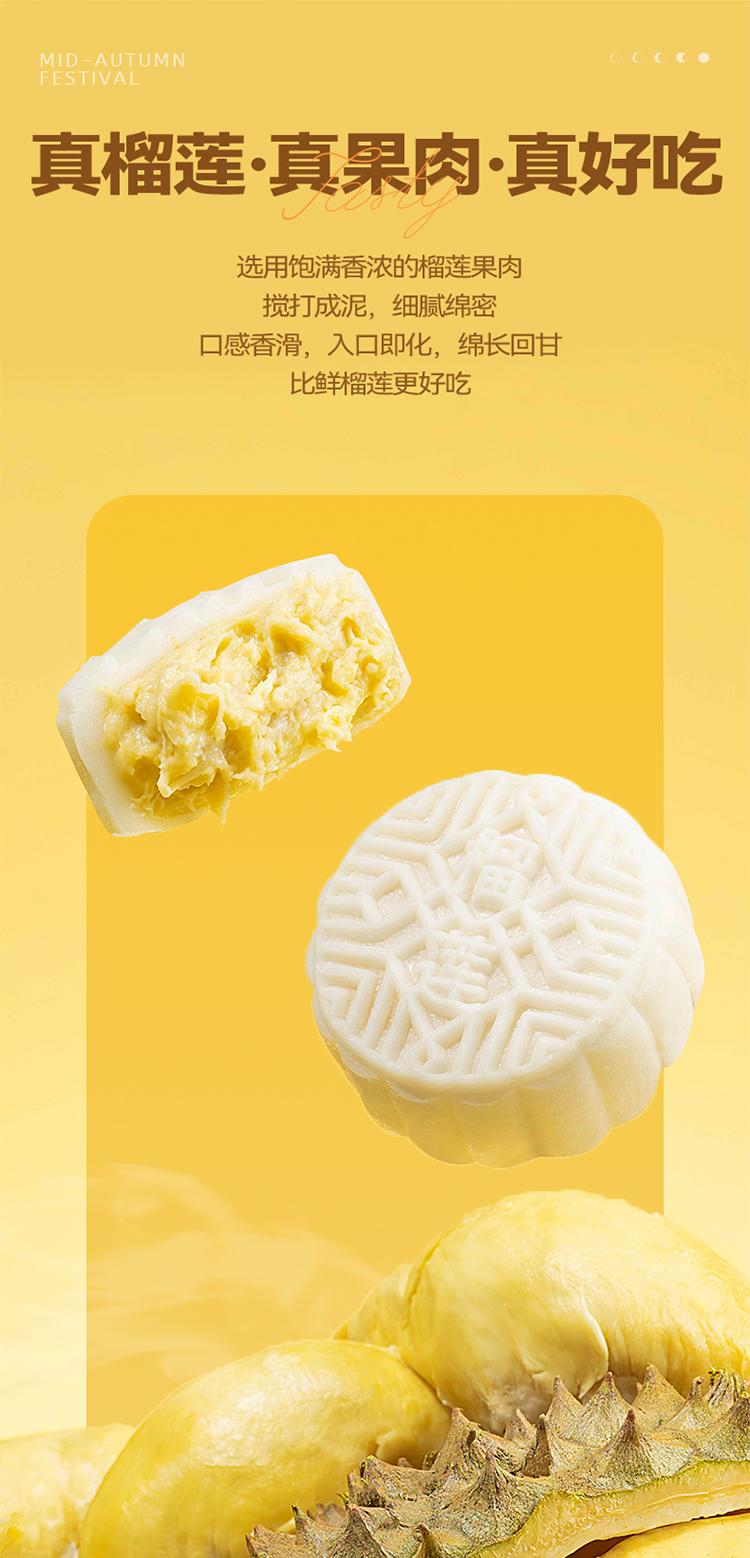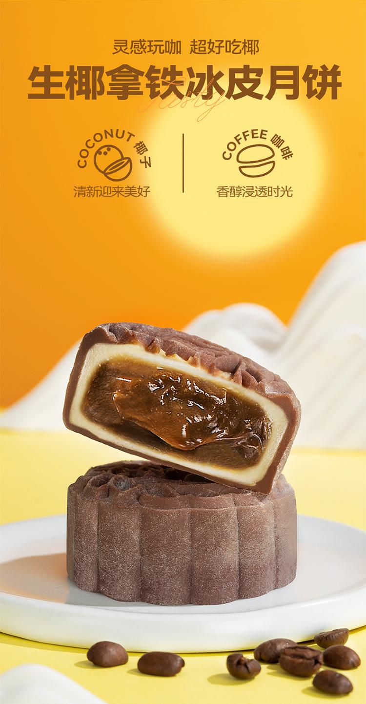 口味:榴莲冰皮月饼100g*2枚 、 芒果芝士冰皮月饼100g*2枚 、 生椰拿铁冰皮月饼100g*2枚