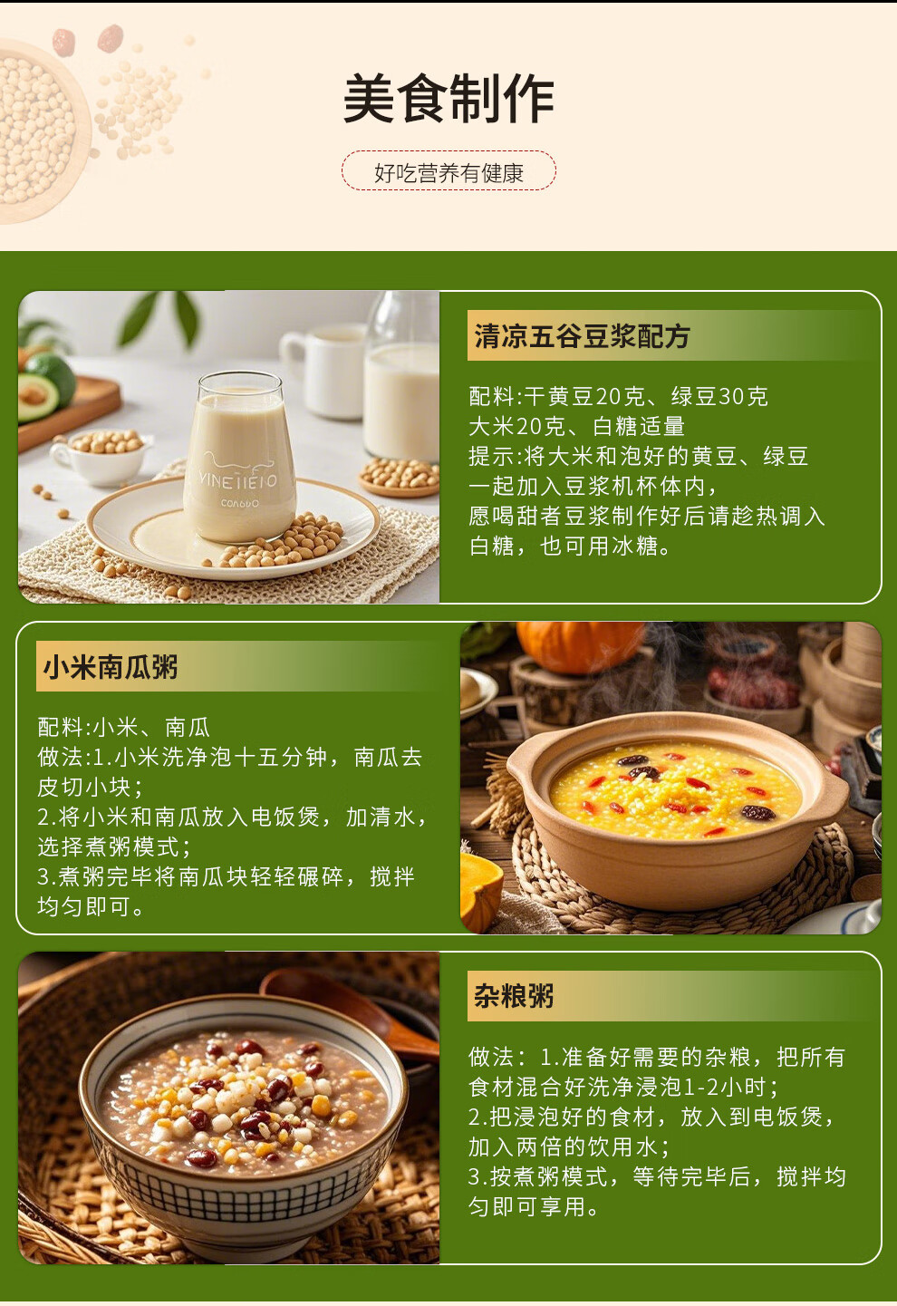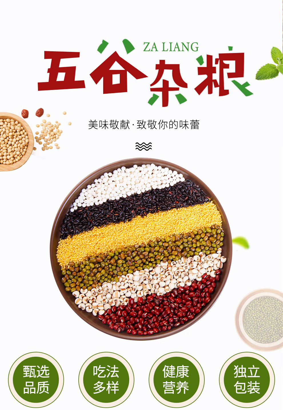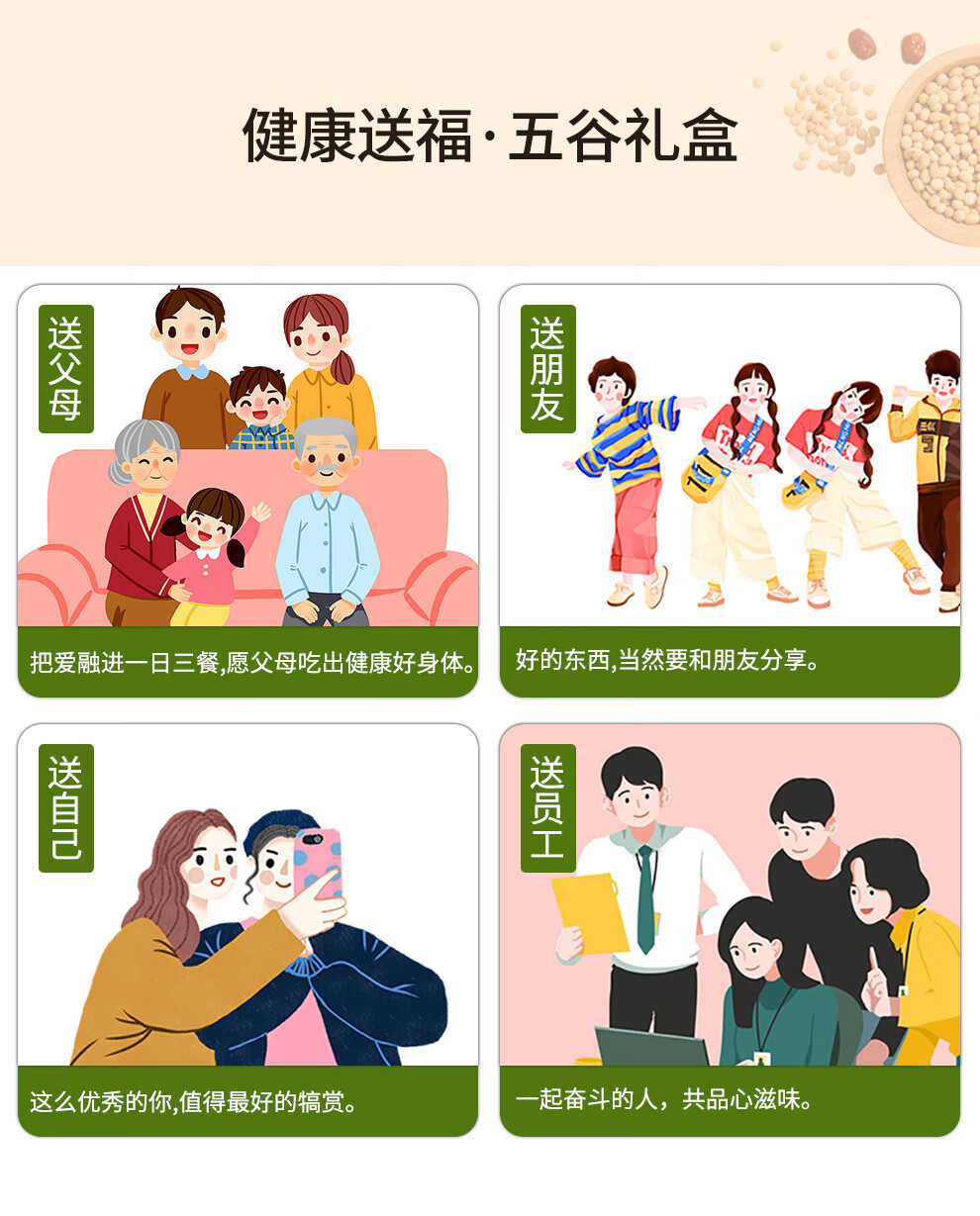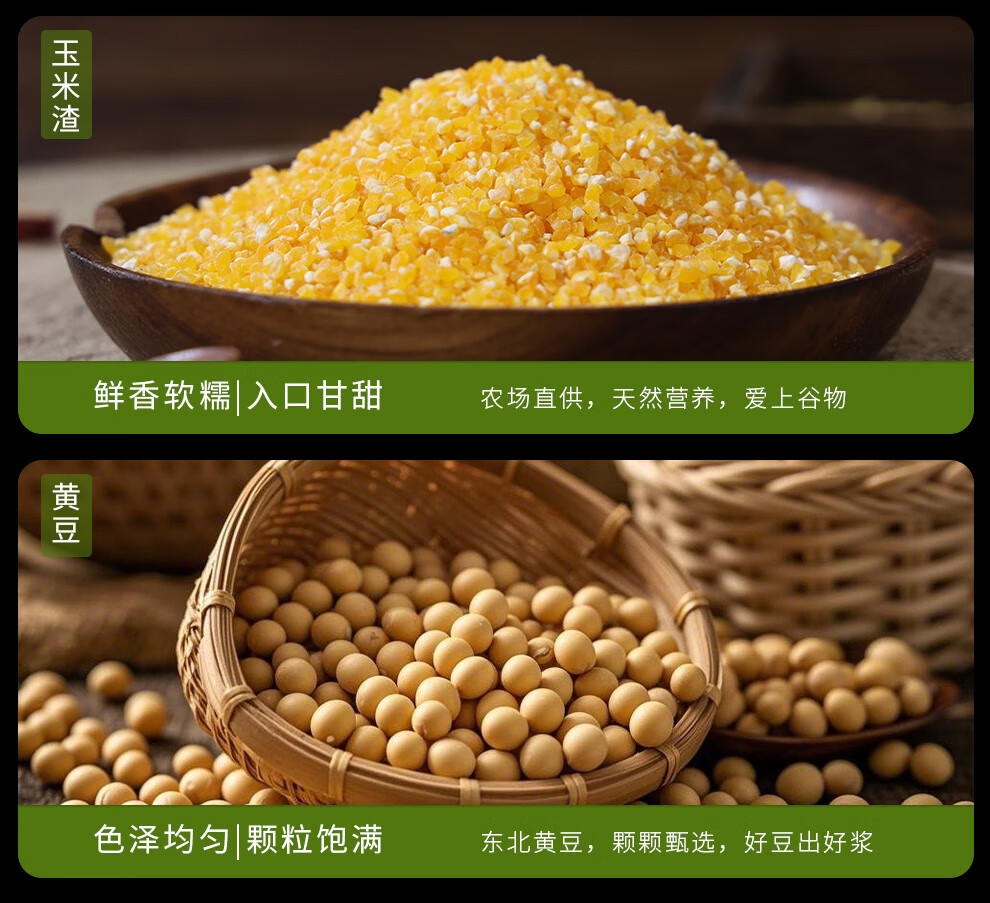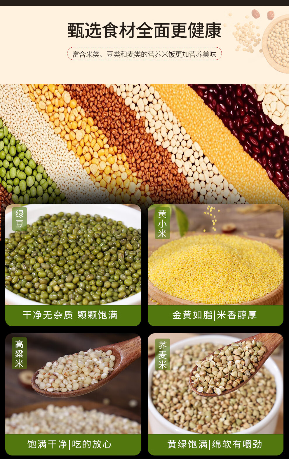 配置清单:宫粮绿豆400g,宫粮燕麦米400g 宫粮黄小米400g,宫粮黑米400g 宫粮大麦米400g ,宫粮高粱米400g 宫粮玉米渣400g ,宫粮糯米400g 宫粮黑小麦400g ,宫粮黄豆400g