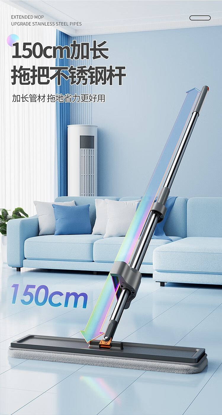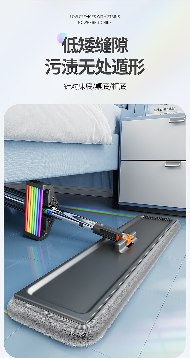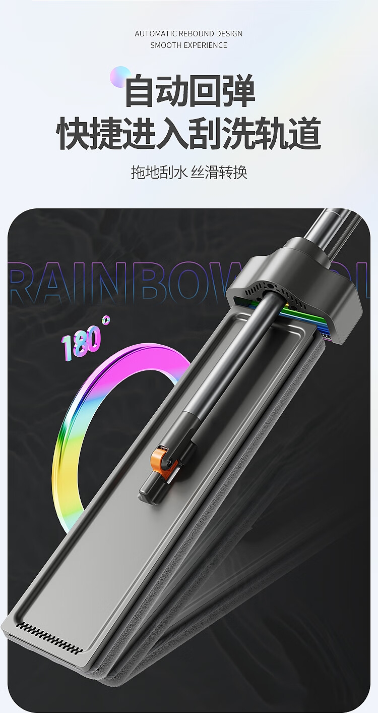 50cm大板头,清洁高效拖地快;7重滚轮式脱水条设计;干湿污渍,高效洁净