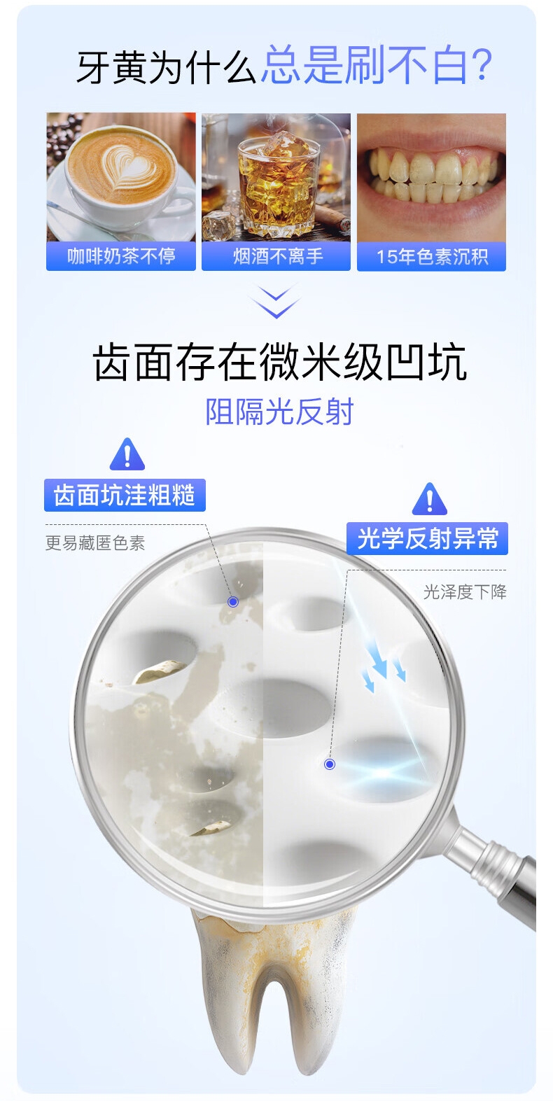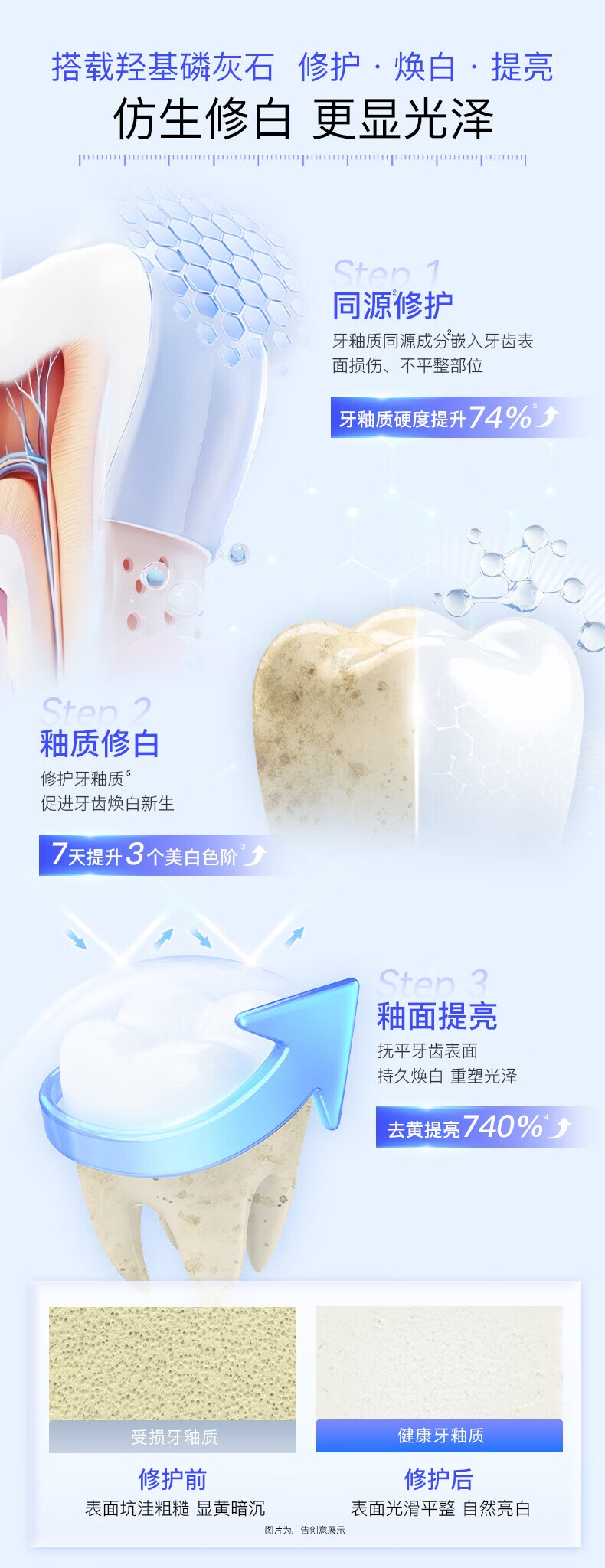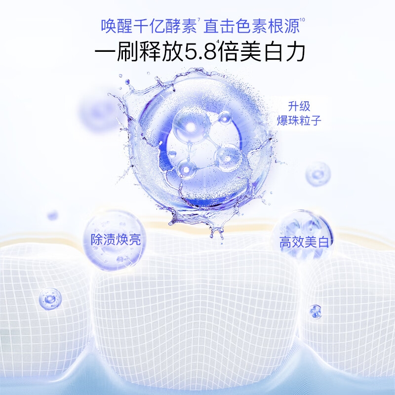 溶解外源性牙渍,温和净白;深入清洁齿间,减少牙齿软垢;清新口气