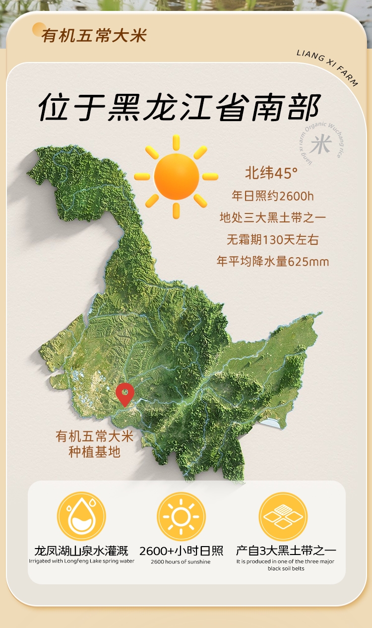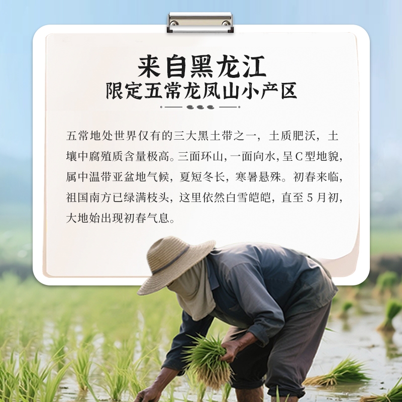 真五常 当季米;2600+小时日照;龙凤湖山泉水灌溉;产自3大黑土带之一;有机认证,溯源防伪