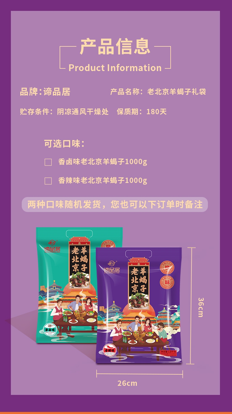 配置:老北京羊蝎子速食礼袋(香卤味)1KG/袋