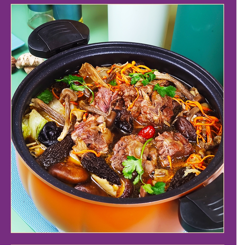 肉多汁美,香而不膻,馋得流口水;肉香嫩而不腻,骨多髓而不滑,汤浓香而不膻;富含钙质、低脂肪、低胆固醇、高蛋白、易于人体吸收