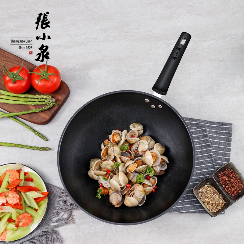 外观优雅,尺寸合理,适合一般家庭使用;锅体材质为精铁,无涂层;锅体经气氮工艺处理,不易生锈;金属铆钉加固工艺,结实牢固;人体工程学手柄设计,握感舒适