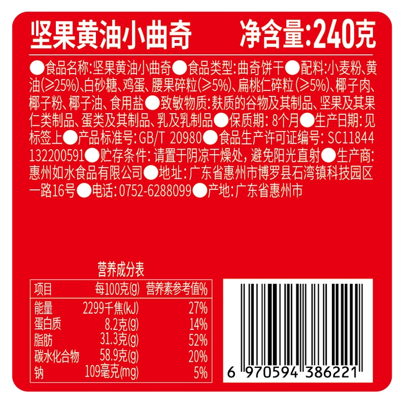 如水只用高品质香港美玫烘焙专用粉,无添加,口感好;办公休闲零食零添加食品添加剂,送清凉,旅行必备,;添加烤椰粒、进口椰子粉、鲜榨椰油