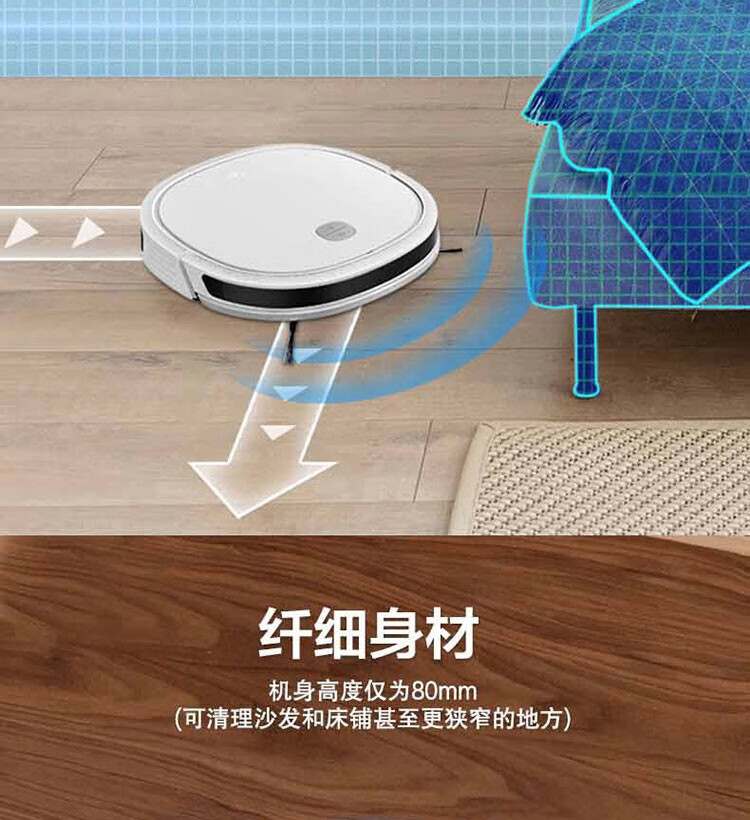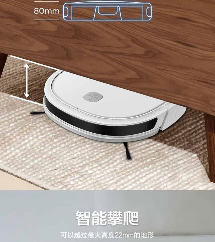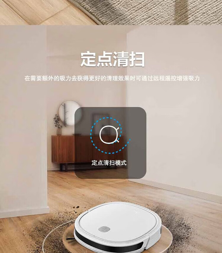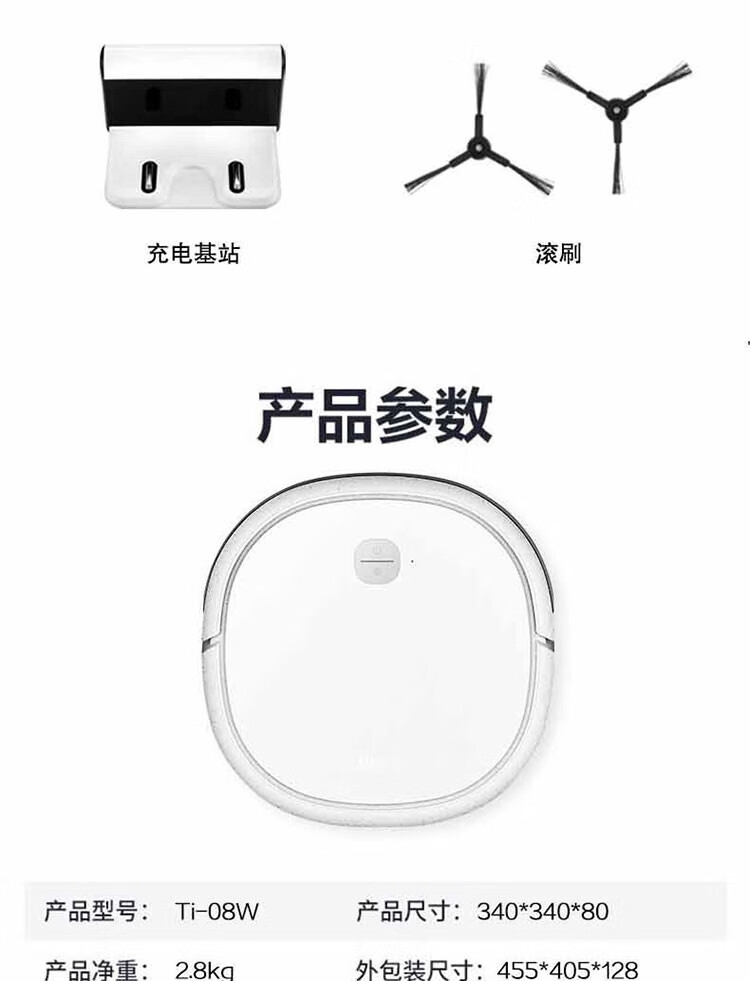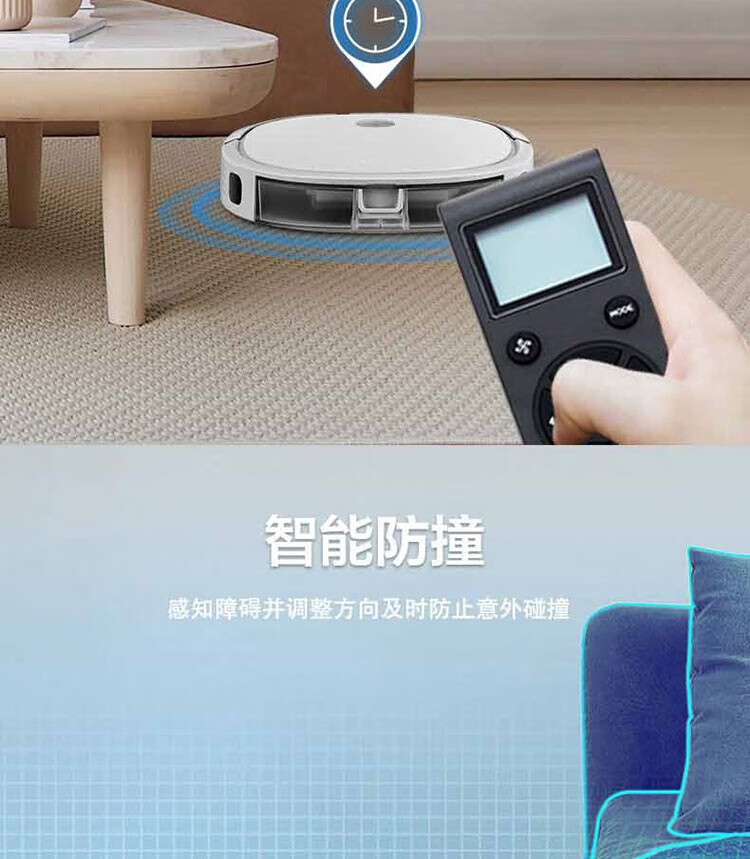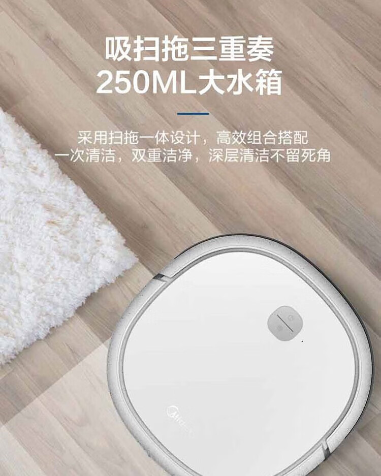 多层清扫,大滚刷;;定点清扫,沿边清理;;随心定时,智能防撞;;纤细身材,智能攀爬;;大容量尘盒和水箱,APP操控;
