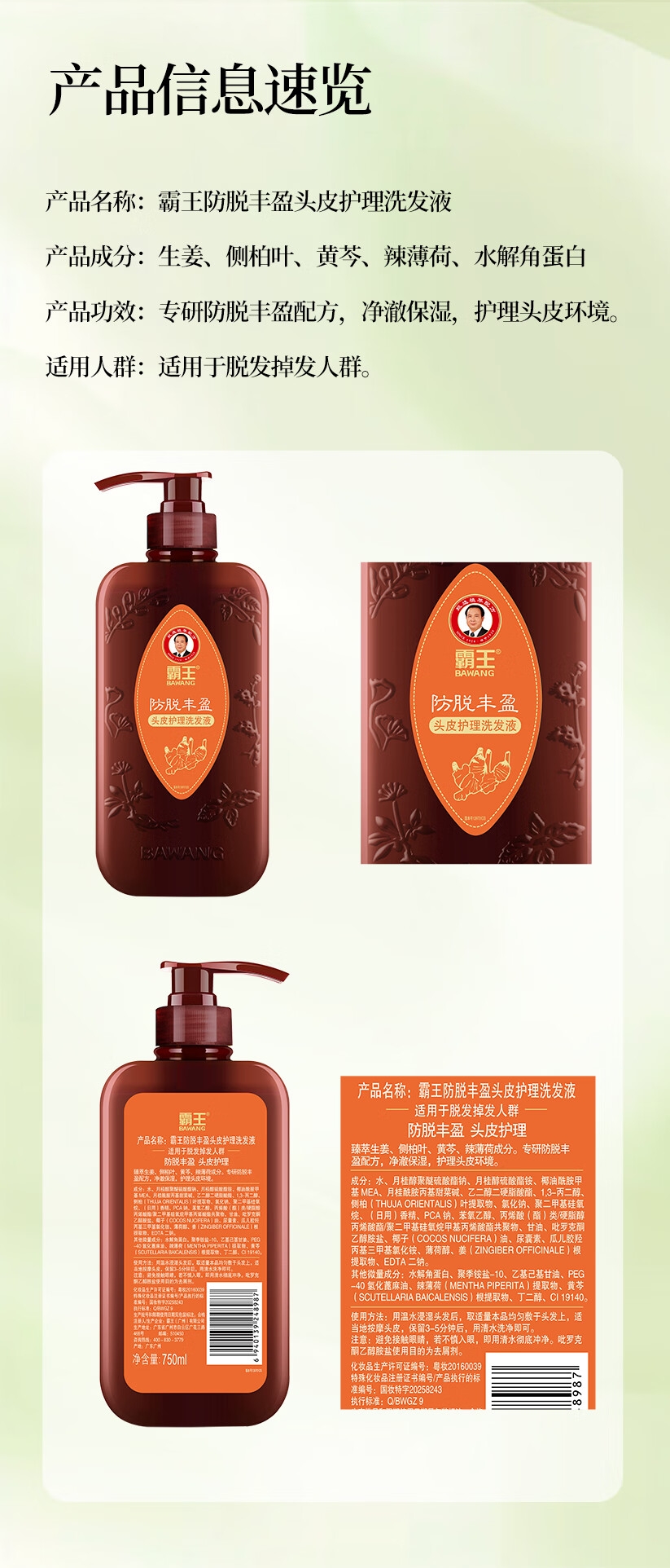 霸王 防脱丰盈头皮护理洗发750ml10101022298