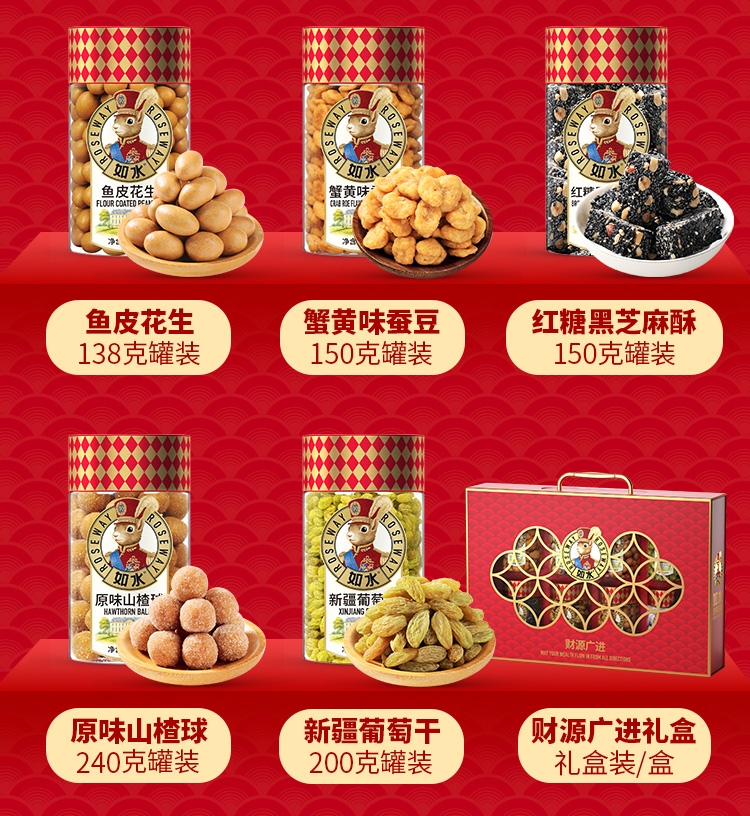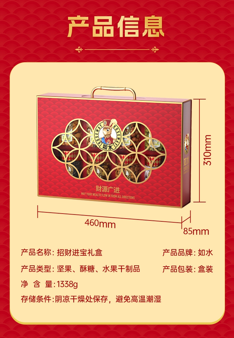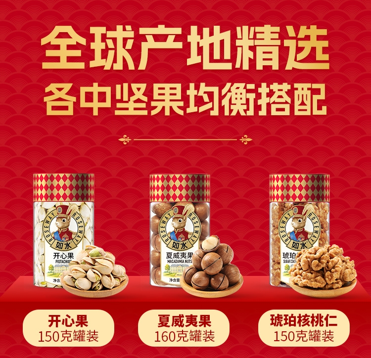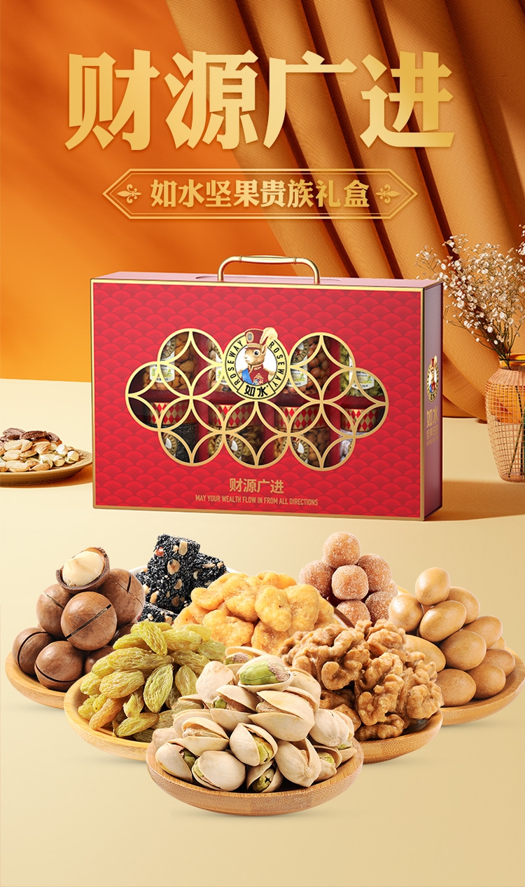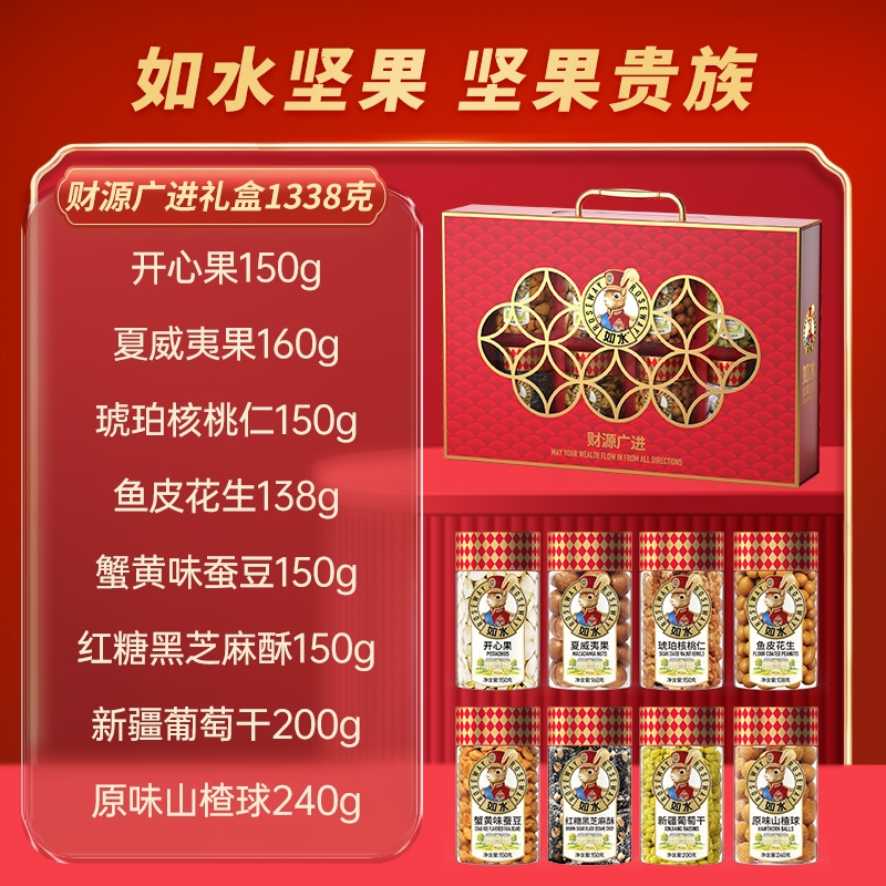 如水坚果全球原产地直采,只挑选高等级高品质原材料;5种坚果炒货+2种蜜饯+1种酥糖;节日送礼送领导送长辈,春节端午中秋员工礼品福利