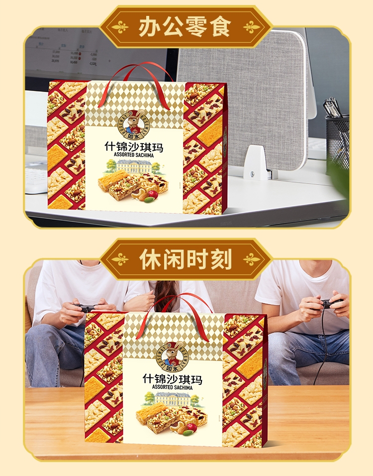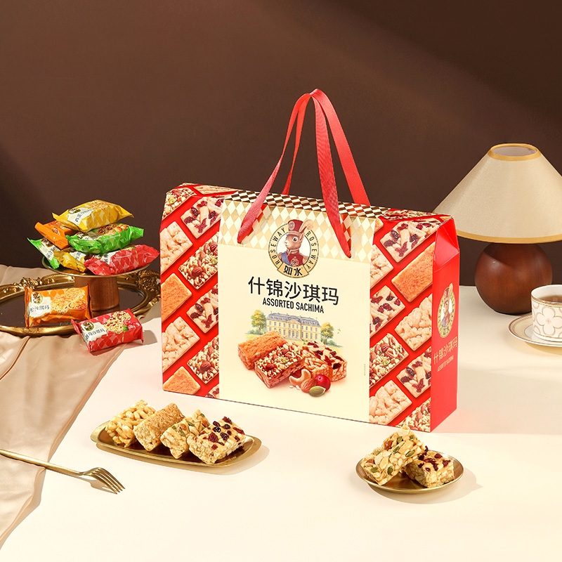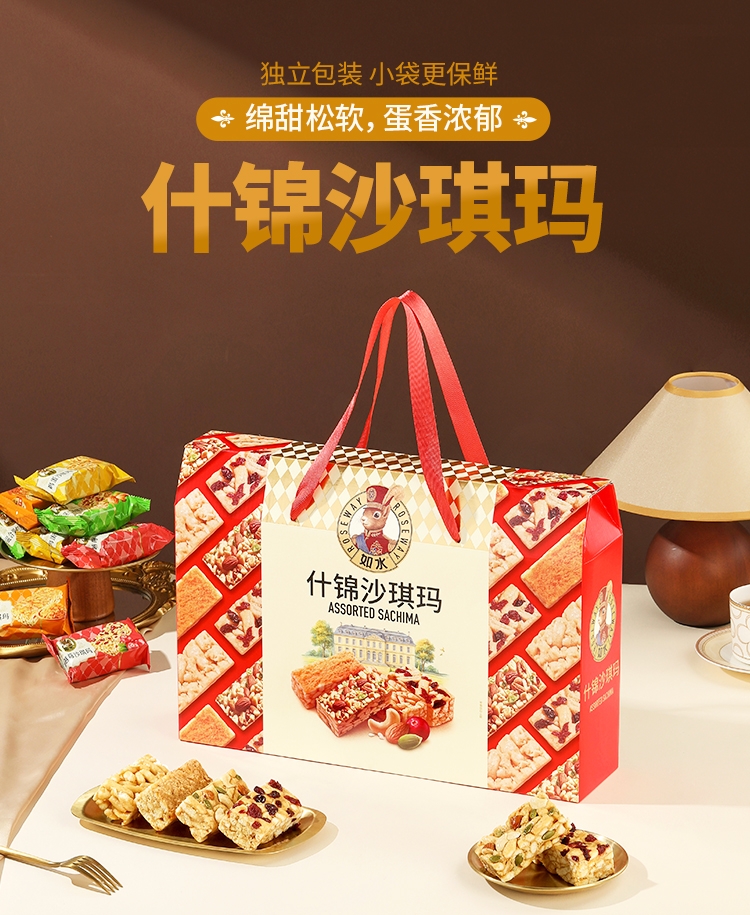 节日送礼送领导送长辈,春节端午中秋员工礼品福利;绿色健康低温烘焙,4种沙琪玛口味。;精美礼盒包装