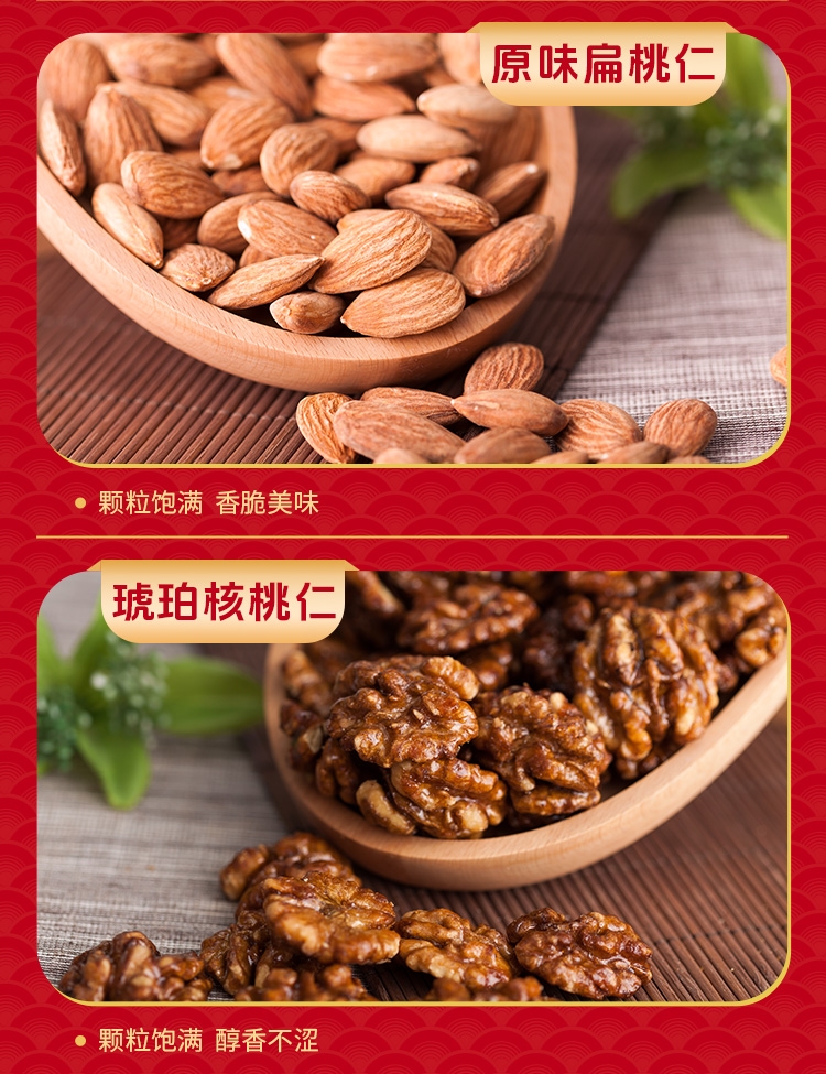 内配:原味扁桃仁450g、开心果350g、紫皮腰果360g、琥珀核桃仁345g