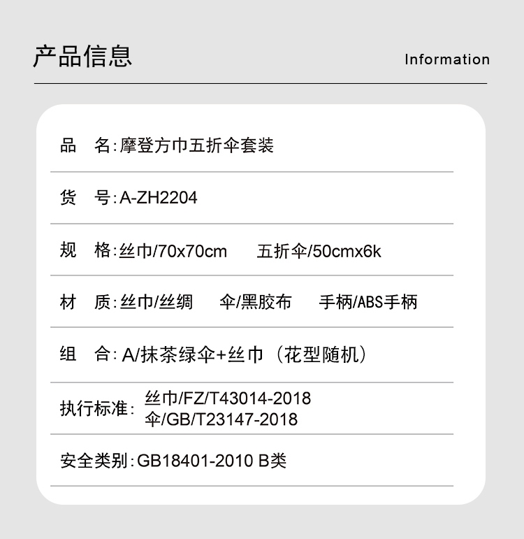 规格:方巾 70×70cm 五折伞 50×6K