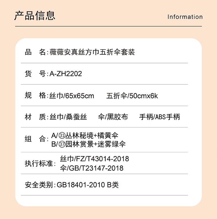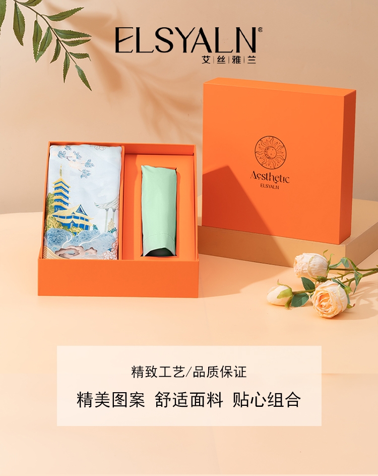 艾丝雅兰 薇薇安真丝方巾五折伞套装A-ZH2202