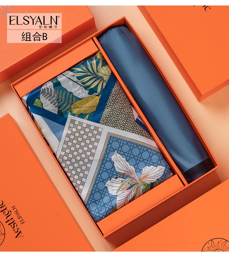 艾丝雅兰 薇薇安真丝方巾三折伞套装A-ZH2201