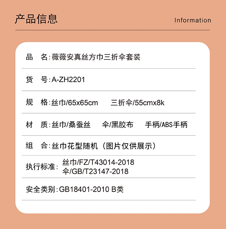组合:方巾 65×65cm 三折自动伞 55×8K