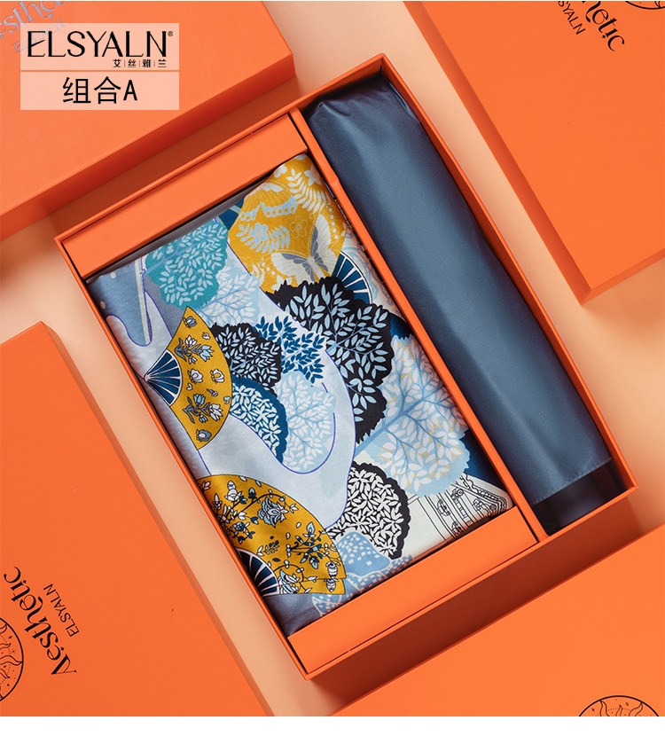 艾丝雅兰 绮梦真丝方巾三折伞套装A-ZH2200