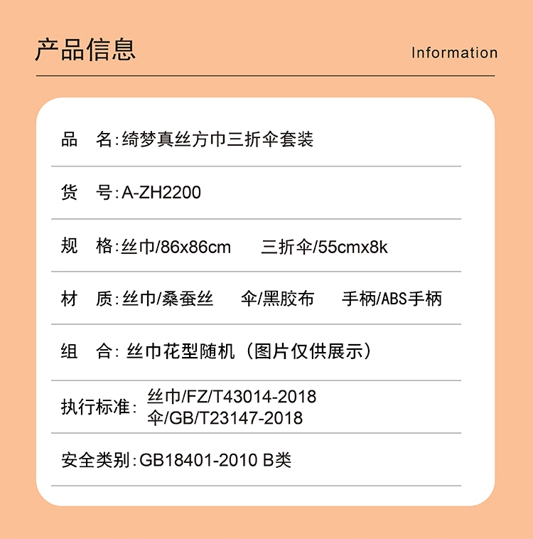 组合:方巾 86×86cm 三折自动伞 55×8K