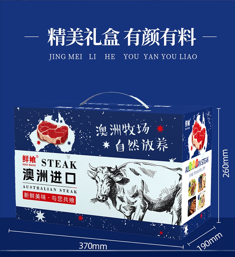 礼盒精美,独立礼盒食用方便。 ;选品严格,品牌强势。;纯整切完整部位肉,无拼接 、无卡拉胶、口感适中,满