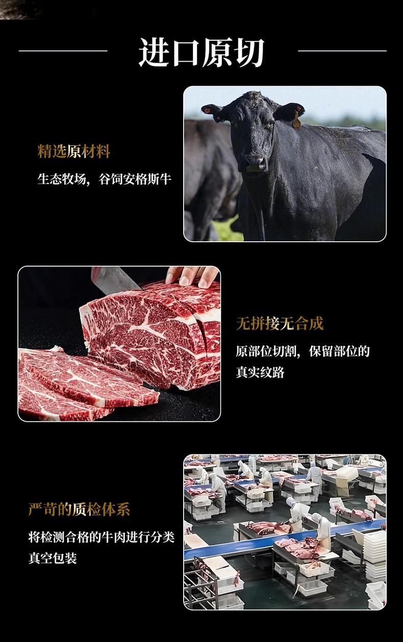 礼盒精美,独立礼盒食用方便。 ;选品严格,品牌强势。 ;纯整切完整部位肉,无拼接 、无卡拉胶、口感适中,满