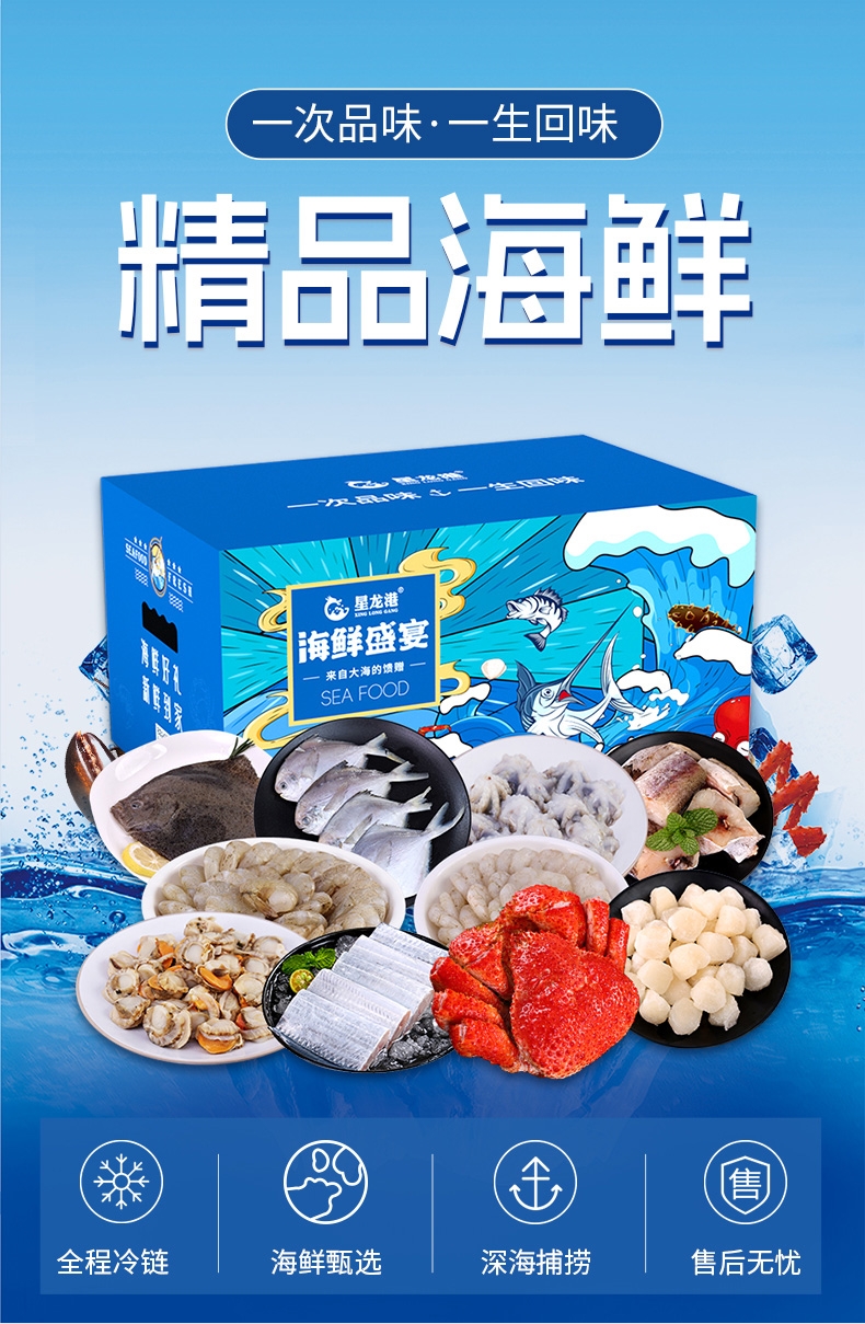 星龙港海鲜礼盒内容丰富,汇集国内产沿海风味;品质保证,食用更放心;便利生活。一盒一餐,在家也能做海鲜大餐