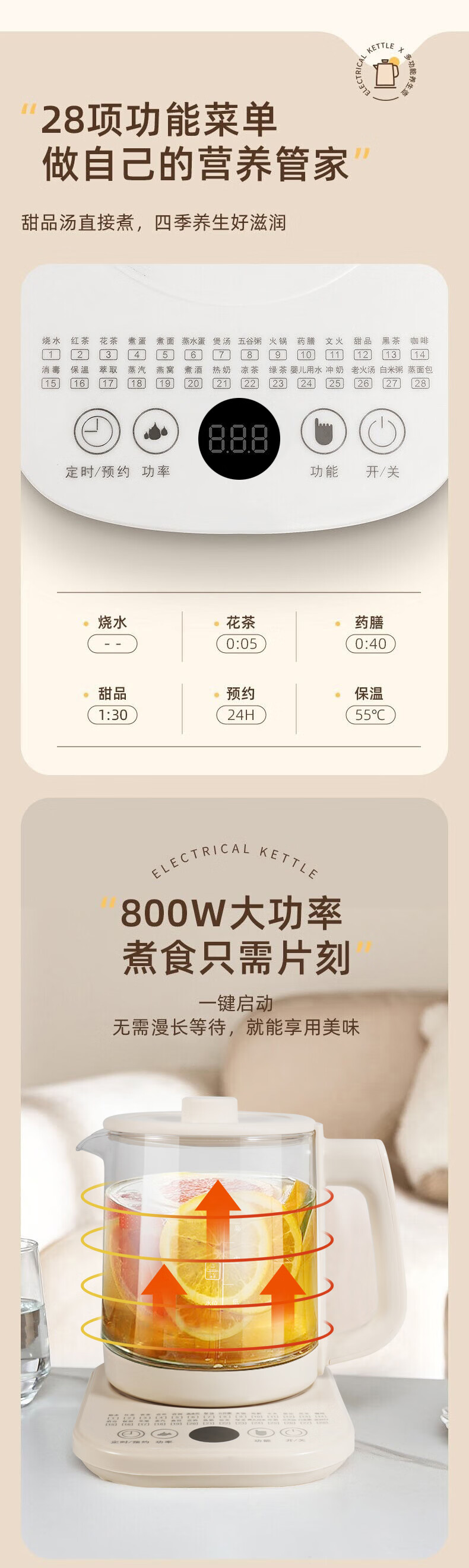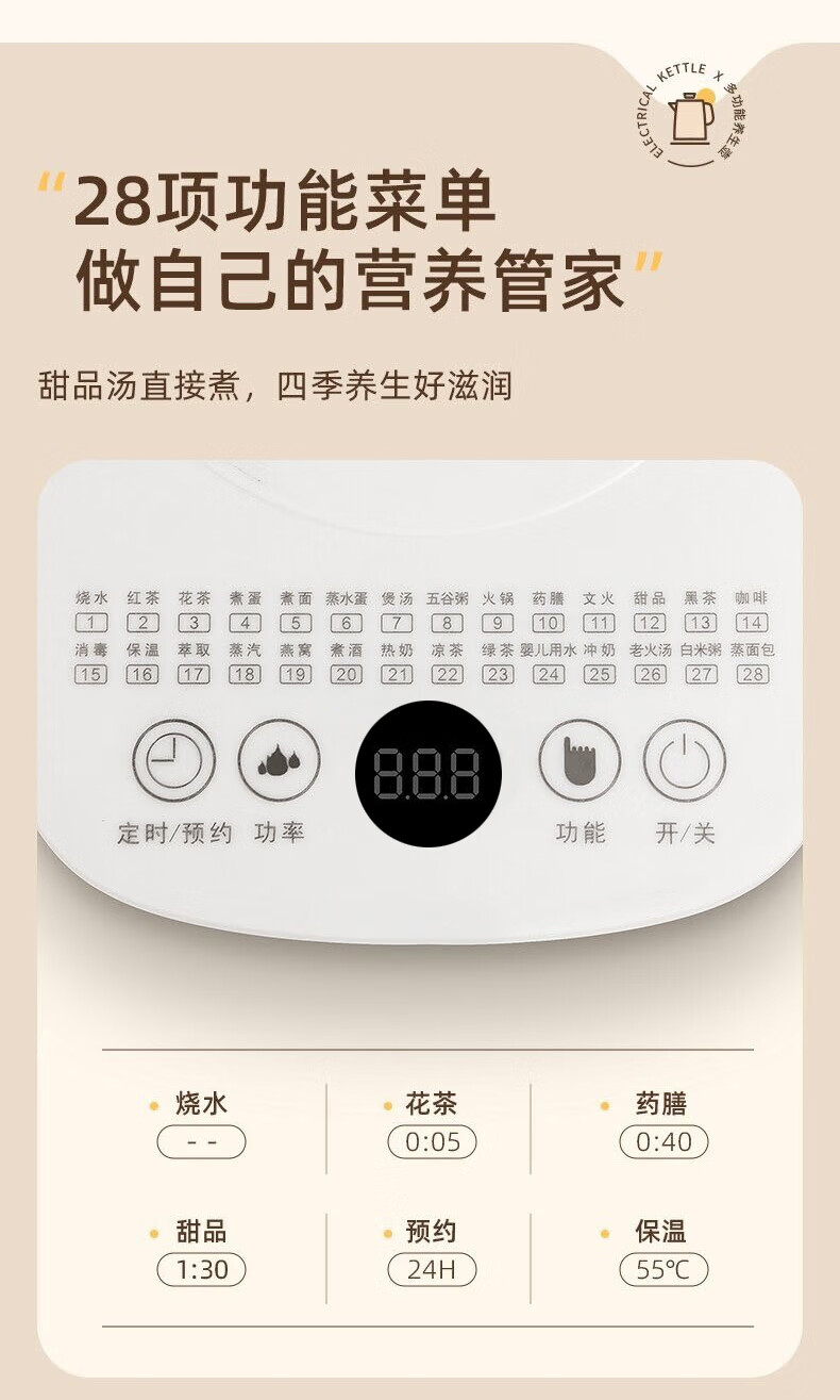 附加功能:自动保温,定时预约,防干烧,防溢