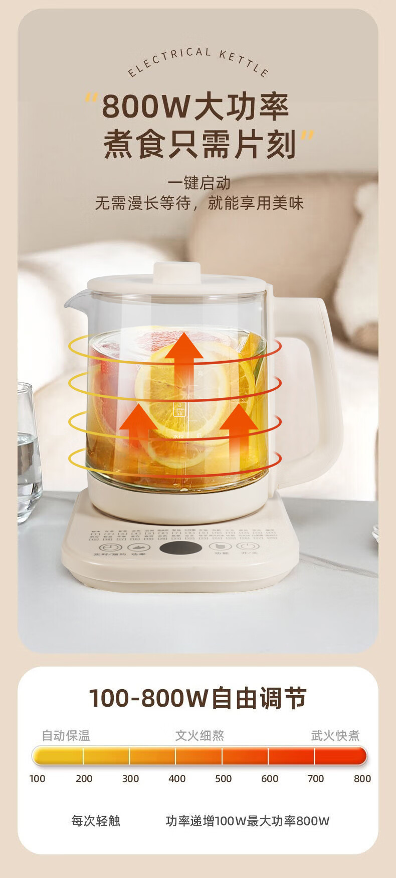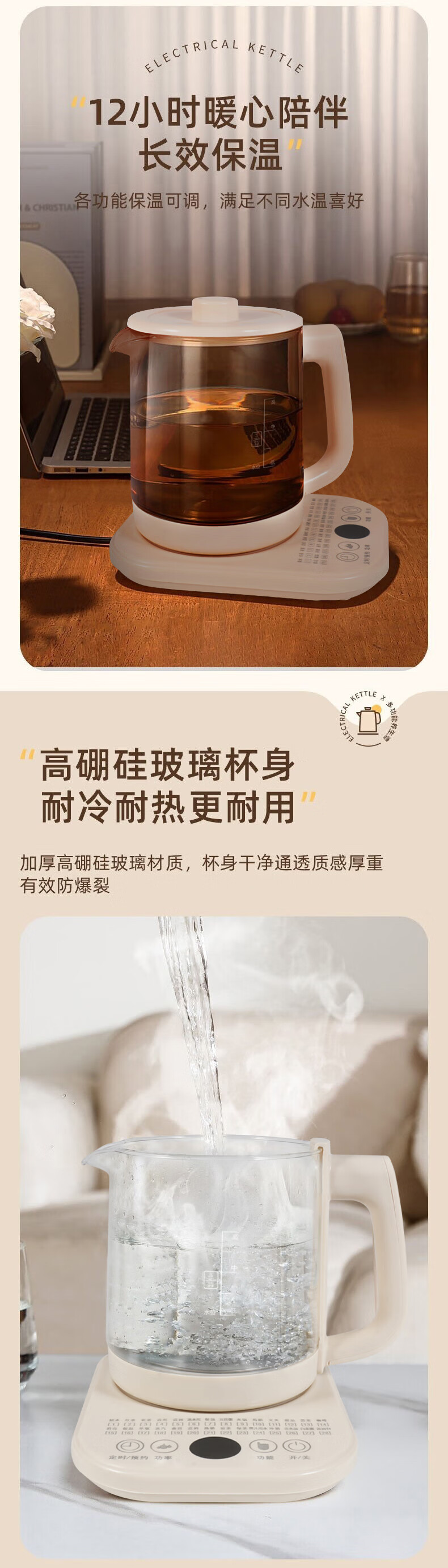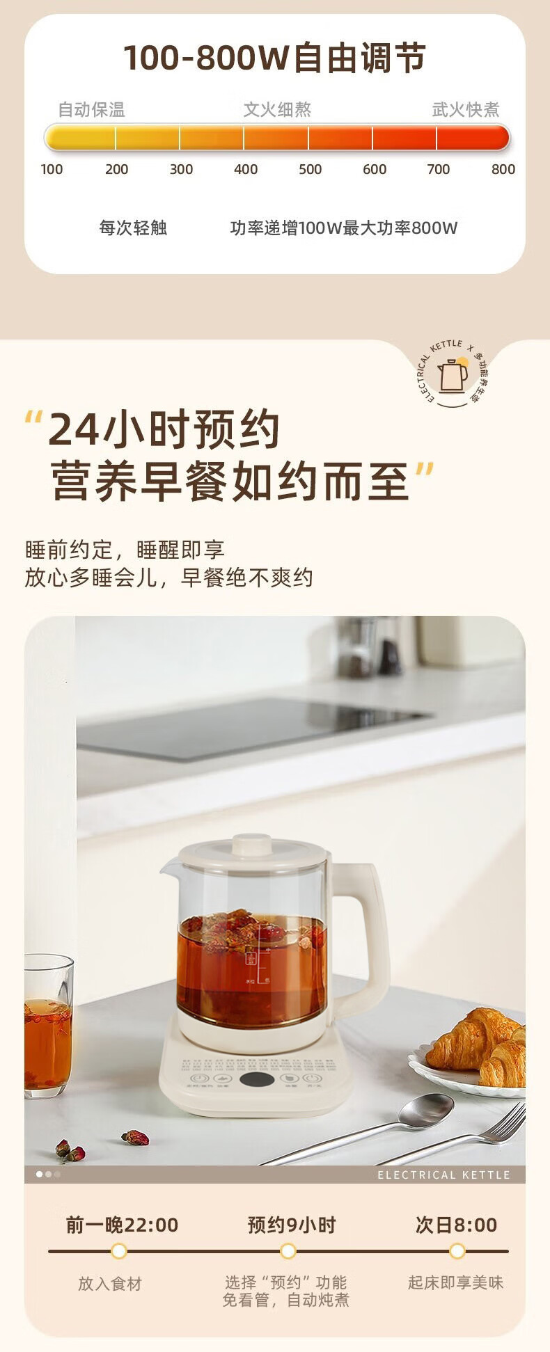 1.8升大容量;耐高温高鹏玻璃;定时预约功能