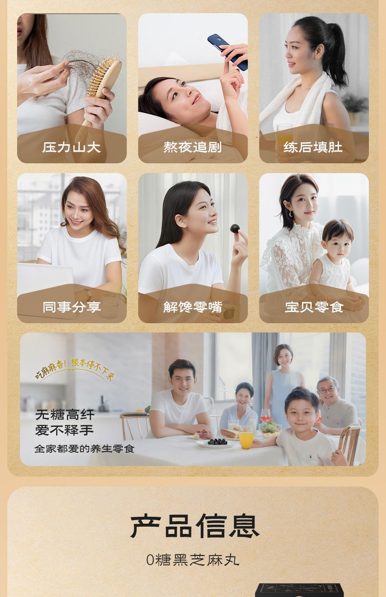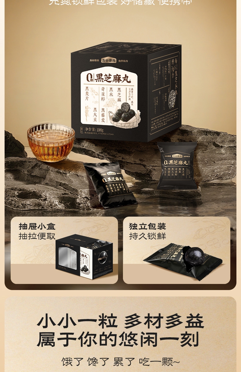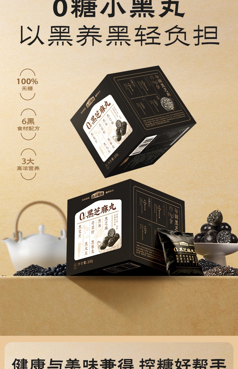 0糖小黑丸,营养轻负担;8大原生营养助力自然好状态;6重黑营养 汇聚黑能量
