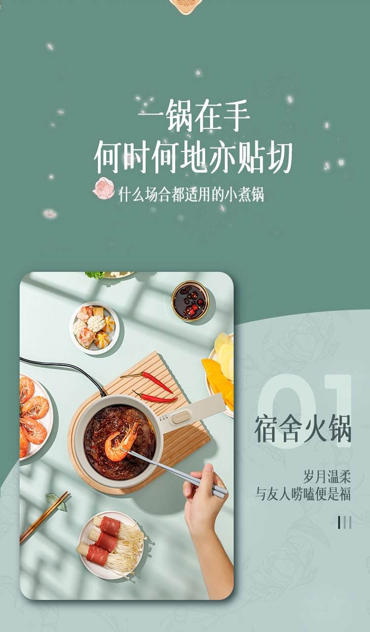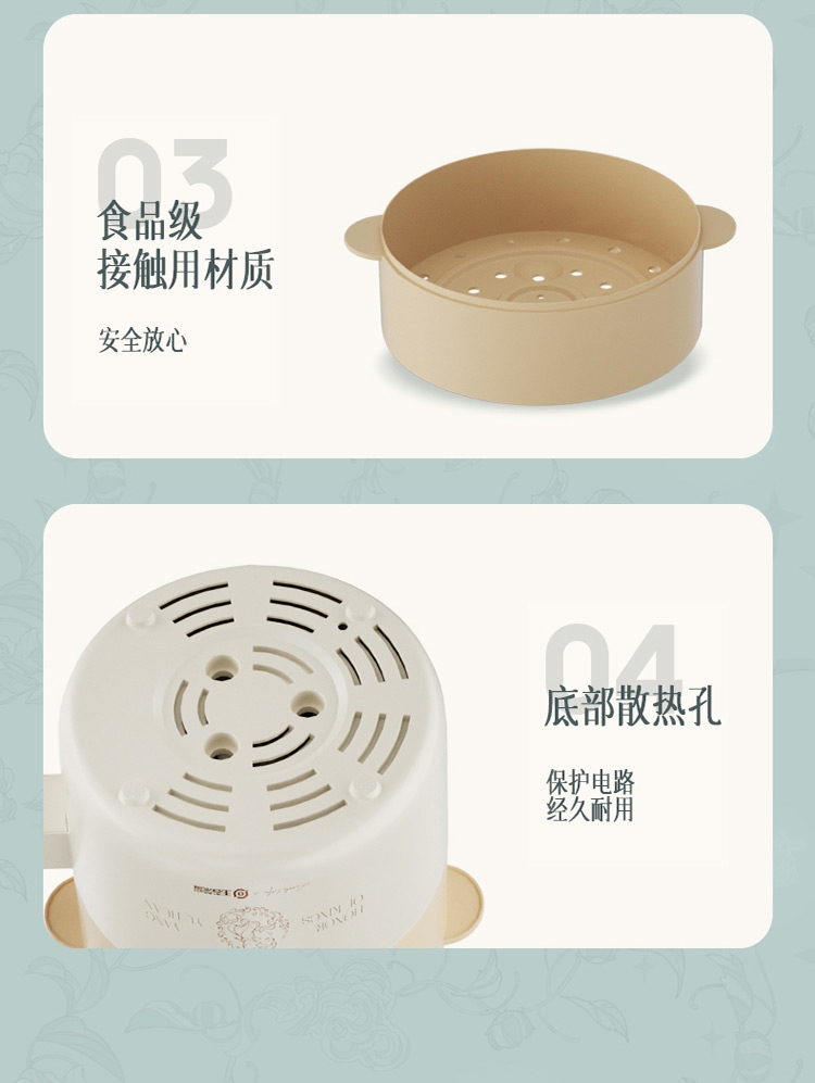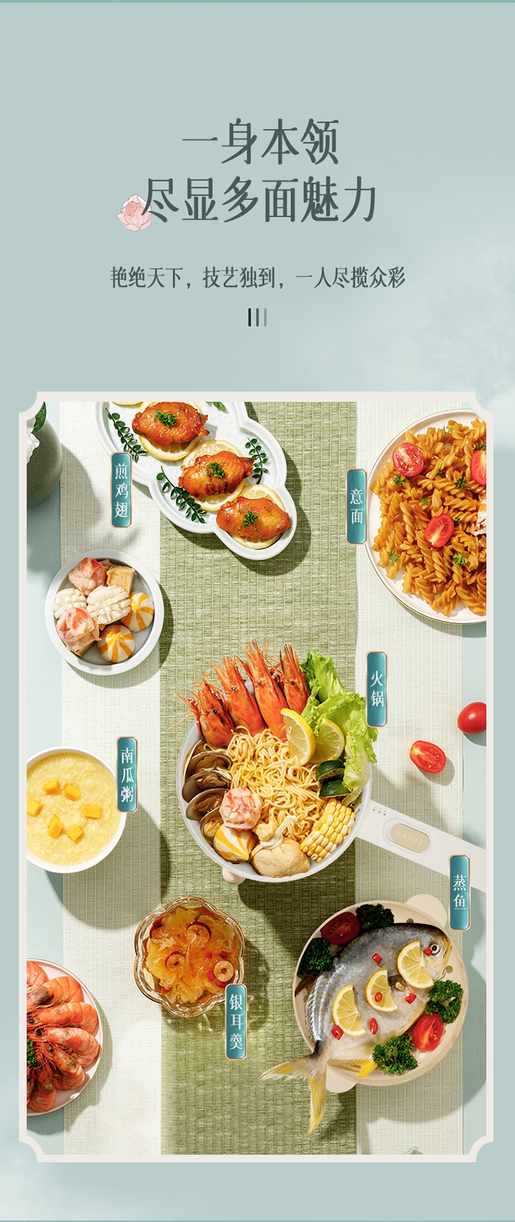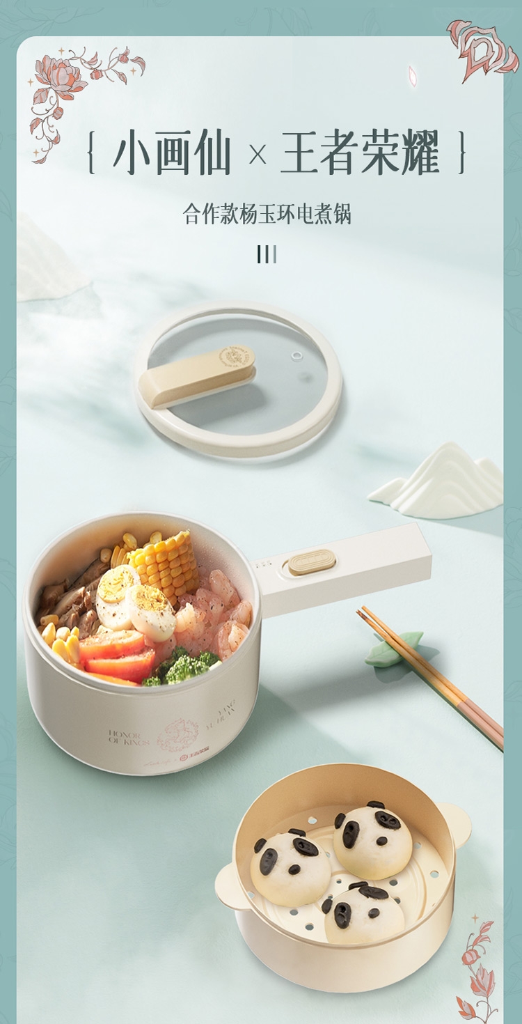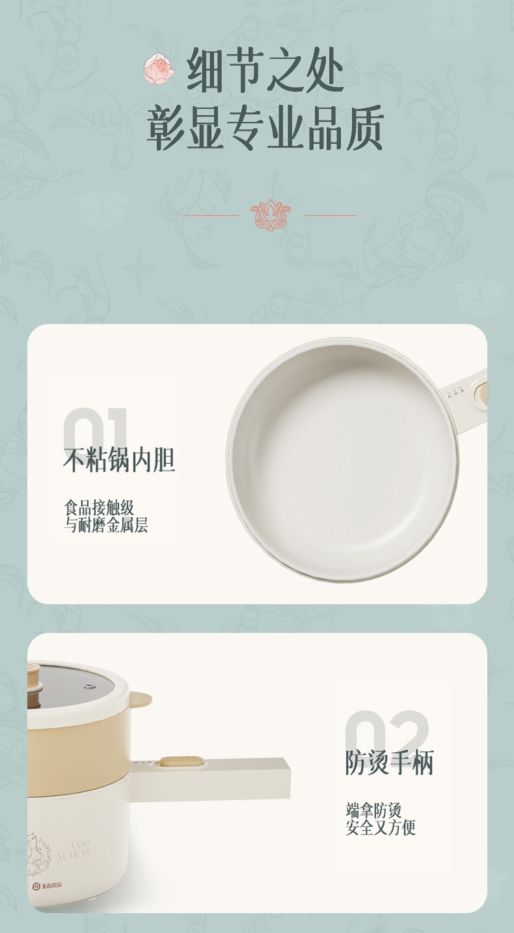 云想衣裳花想容,春风拂兰露华浓,美丽外观,精致内核;下煮上蒸,一锅多能,超固陶瓷油不粘涂层;1.6L容积,更适用于一人独赏两人同享