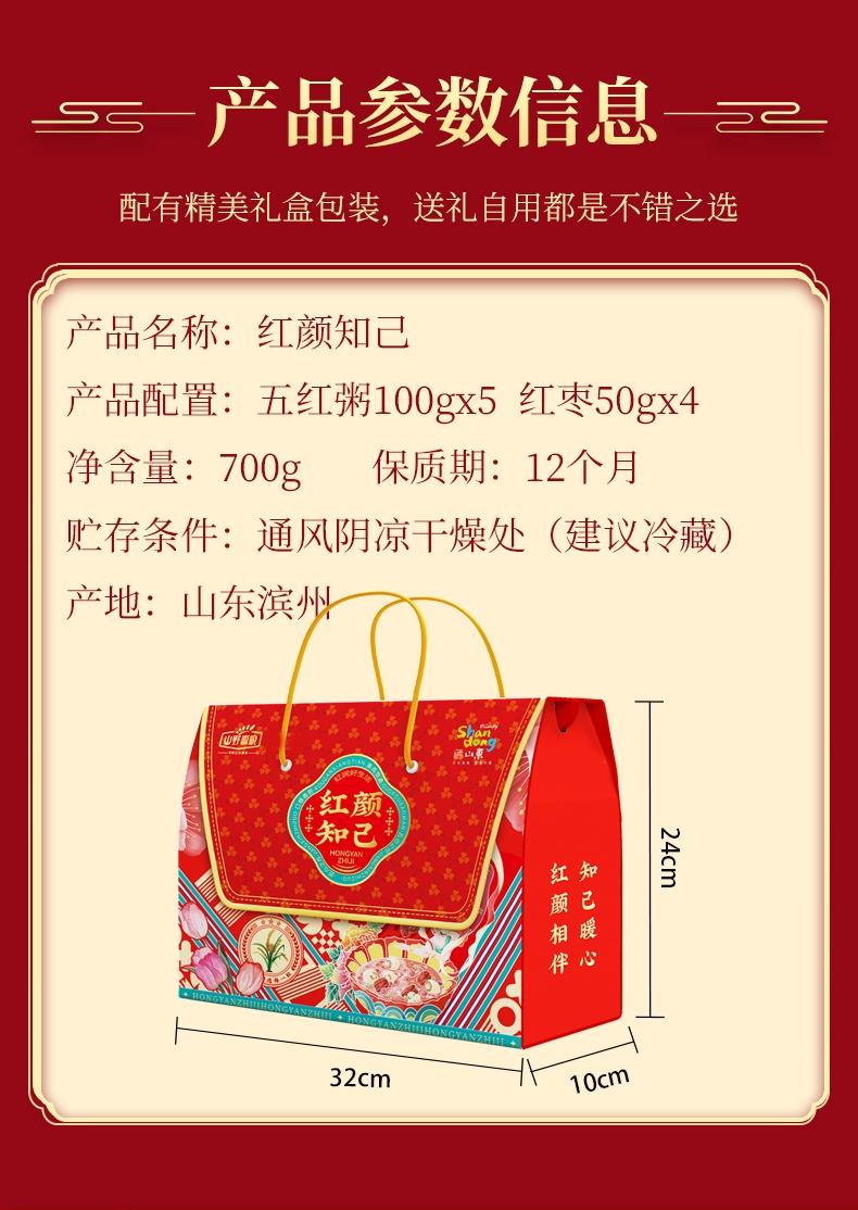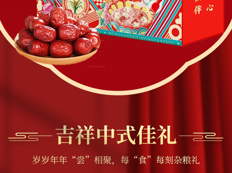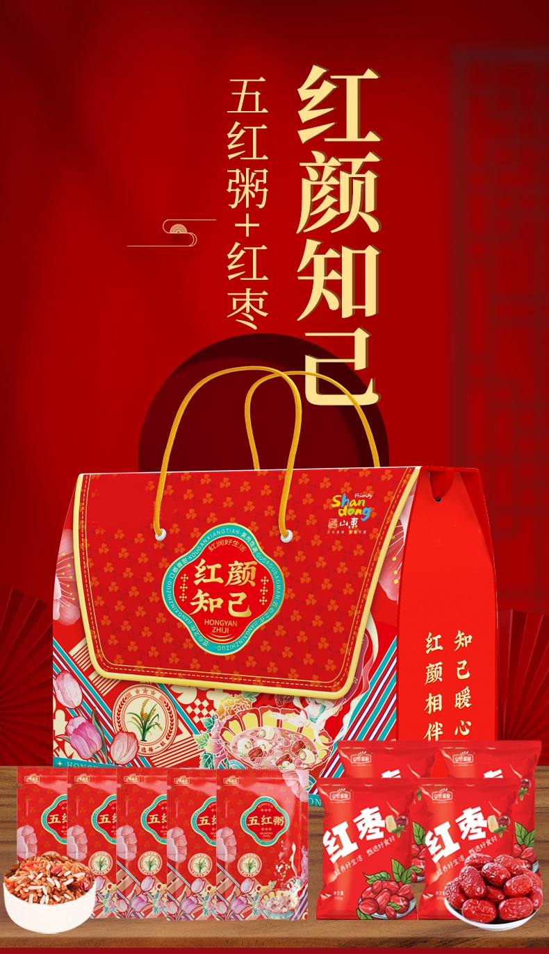 女士节庆礼盒;包装大气画面喜庆;五红粥+红枣组合,补补补