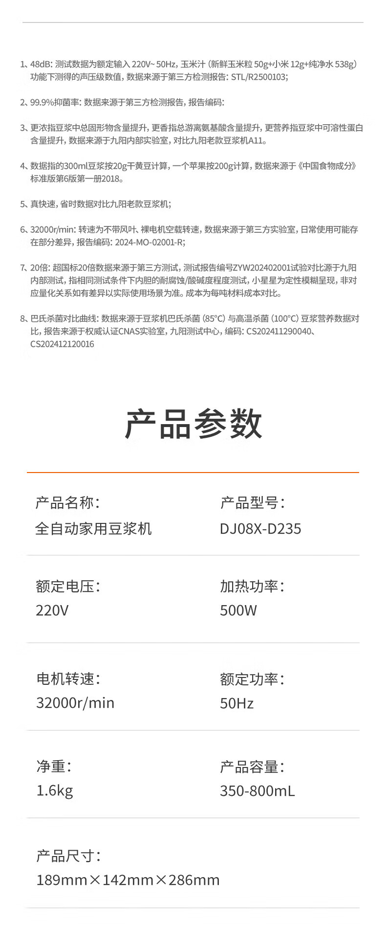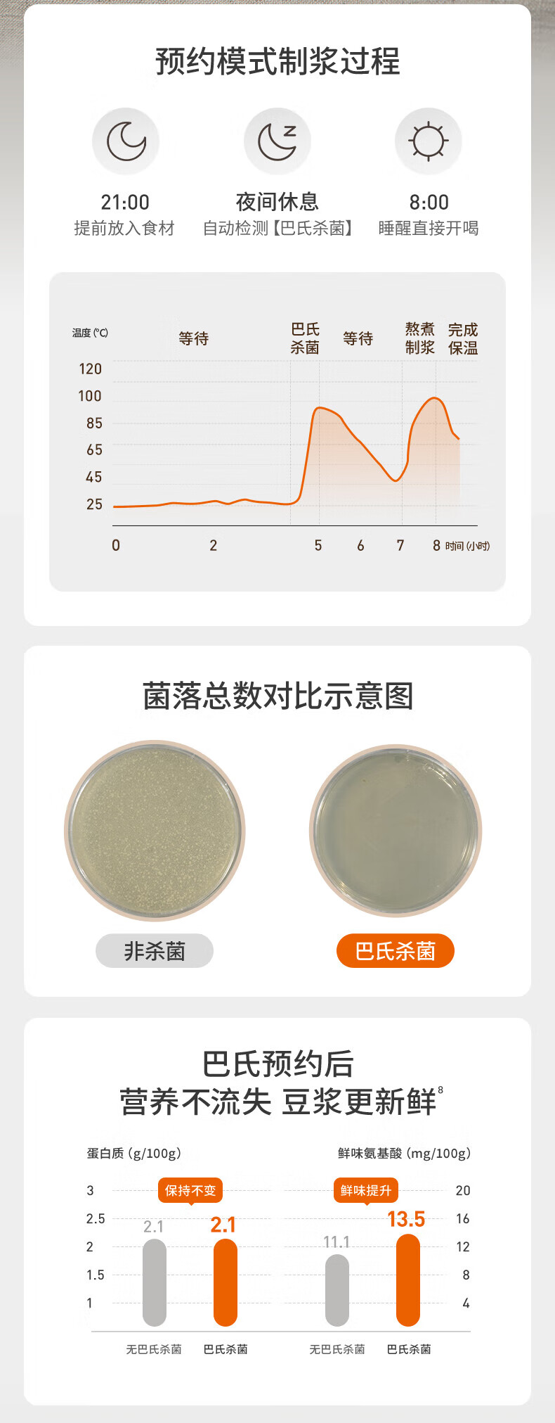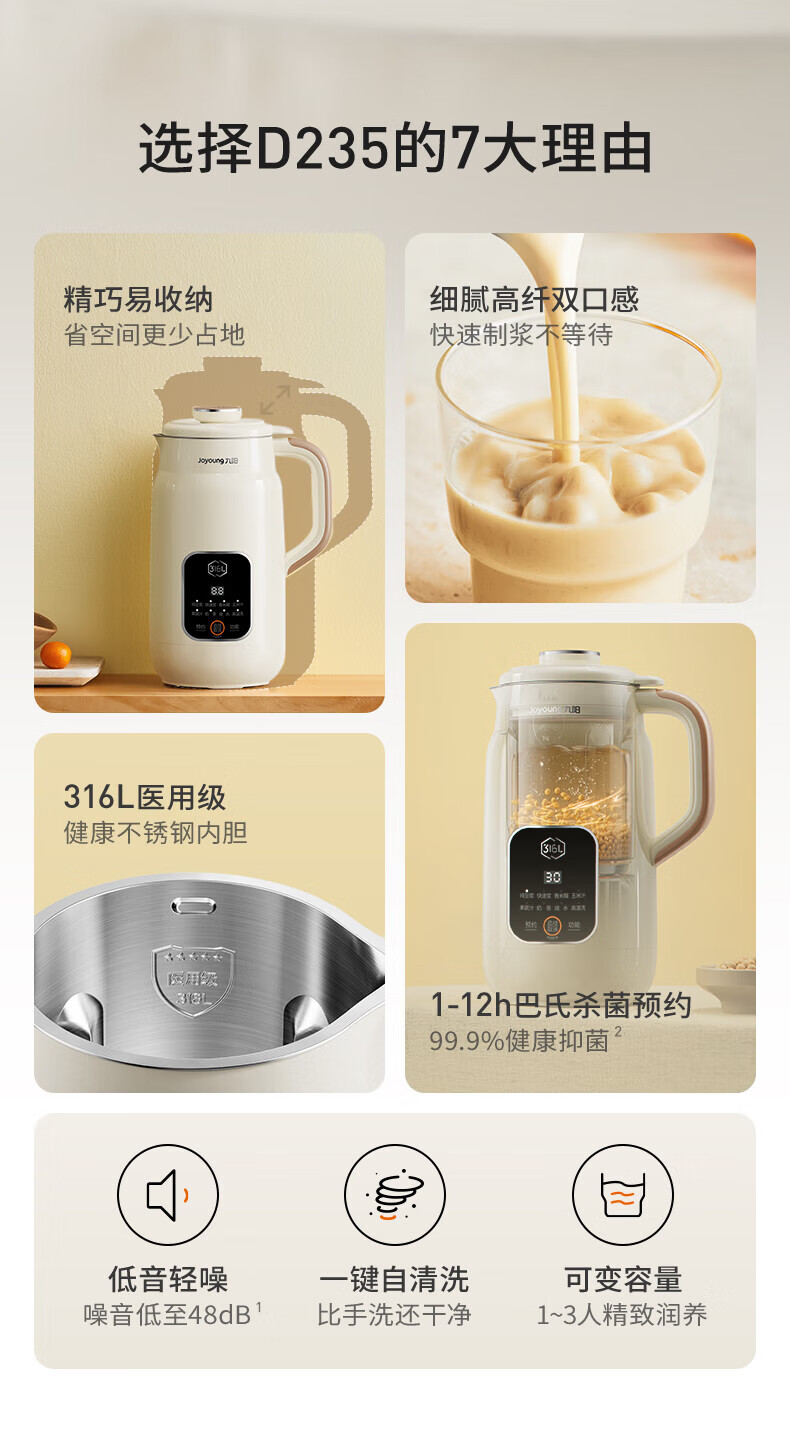 316L医用级,健康不锈钢内胆; 4、低音轻噪,噪音低至48dB;小体积,精巧易收纳