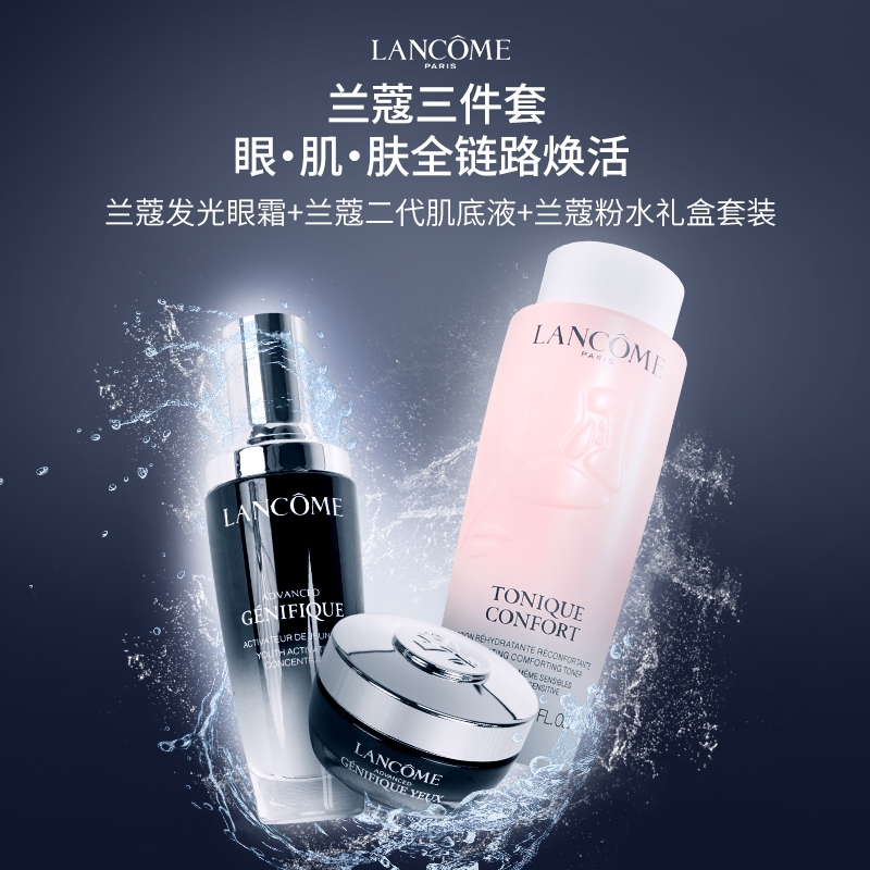 配置清单:兰蔻精华肌底液50ml+兰蔻眼霜15ml+兰蔻粉水400ml(赠礼盒)