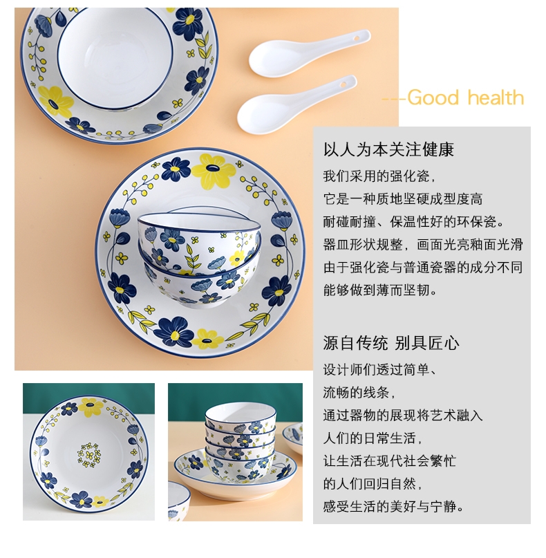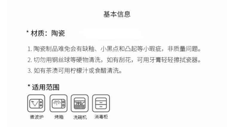 高温陶瓷,健康工艺,质感细腻;精美的图案,给人强烈的视觉冲击;碗盘厚实耐用,方便清洗