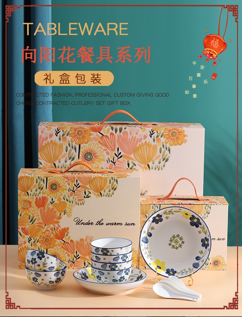 顺聪 向阳花碗勺陶瓷餐具礼盒套装