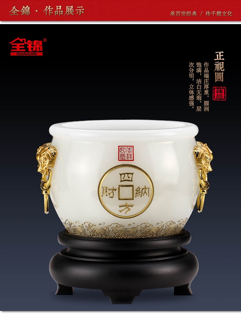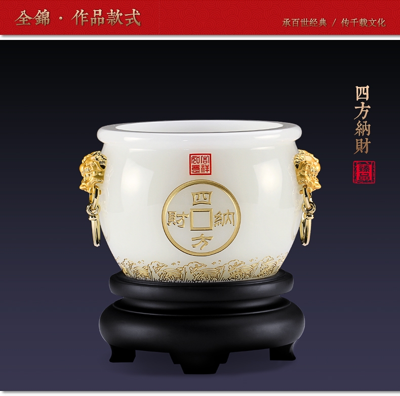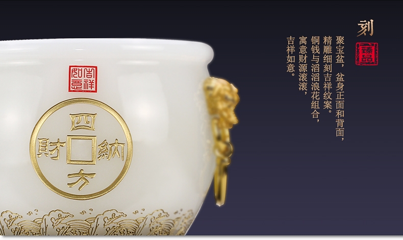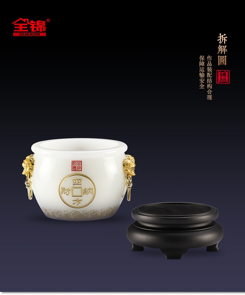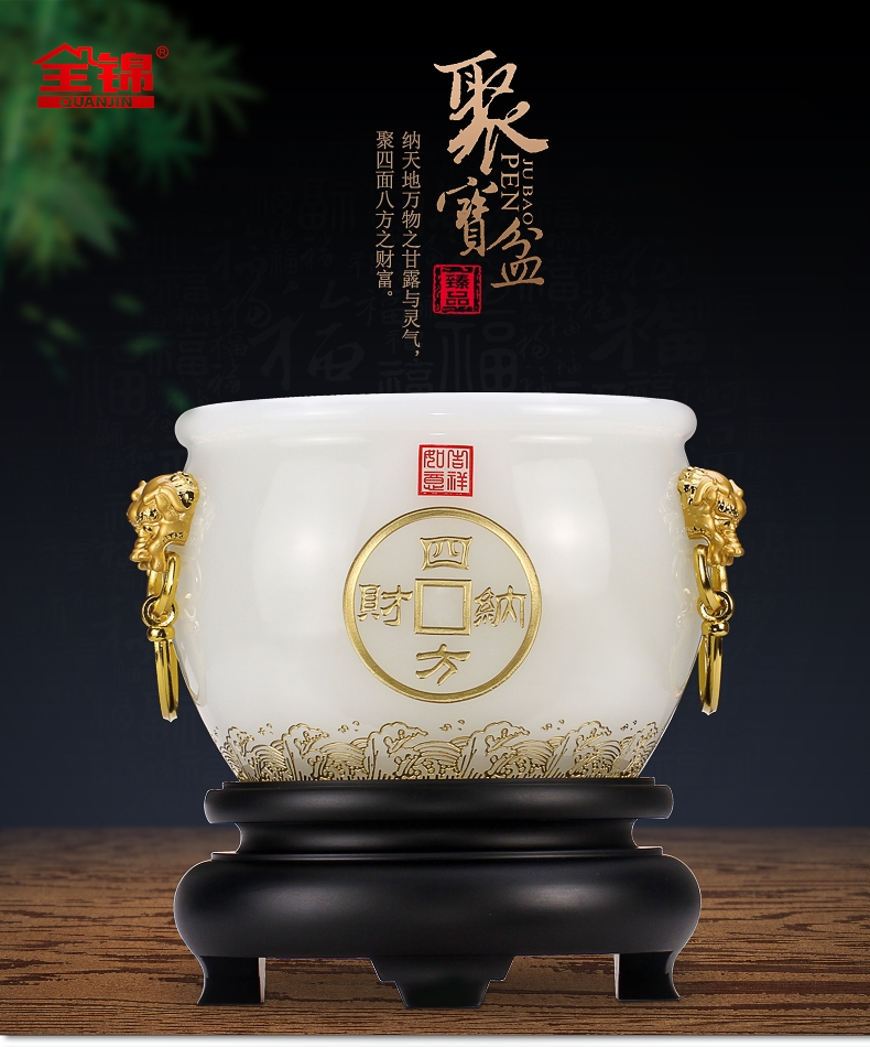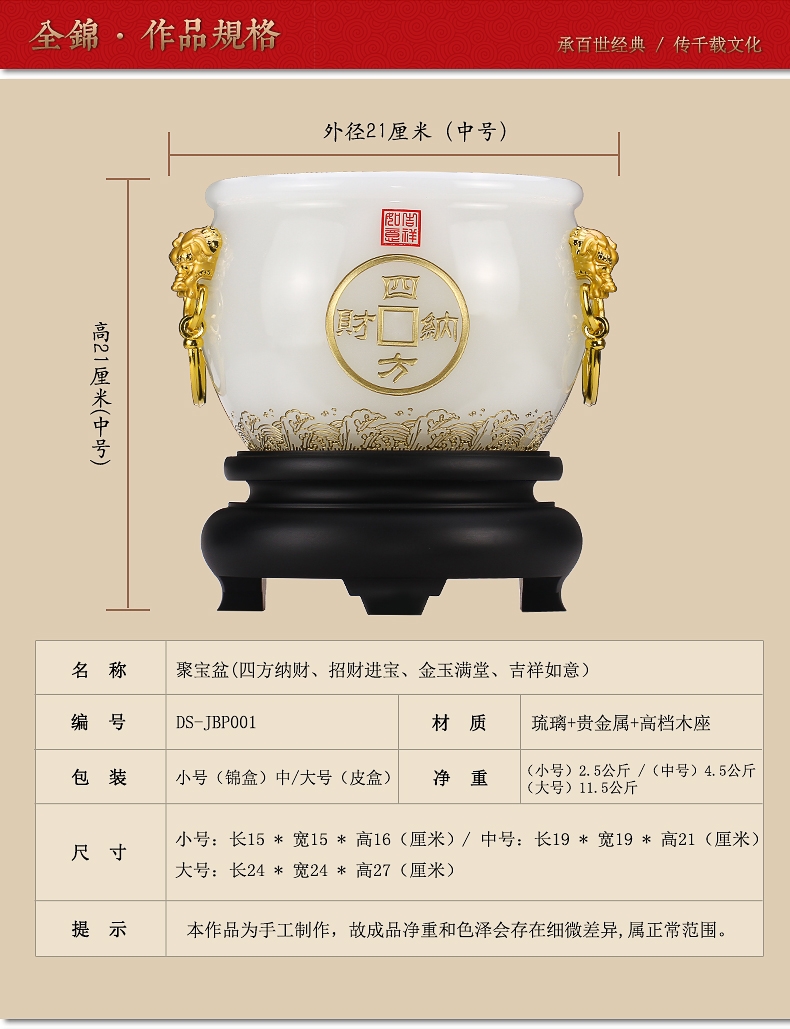 全锦 四方纳财琉璃聚宝盆招财工艺摆件