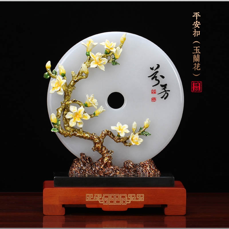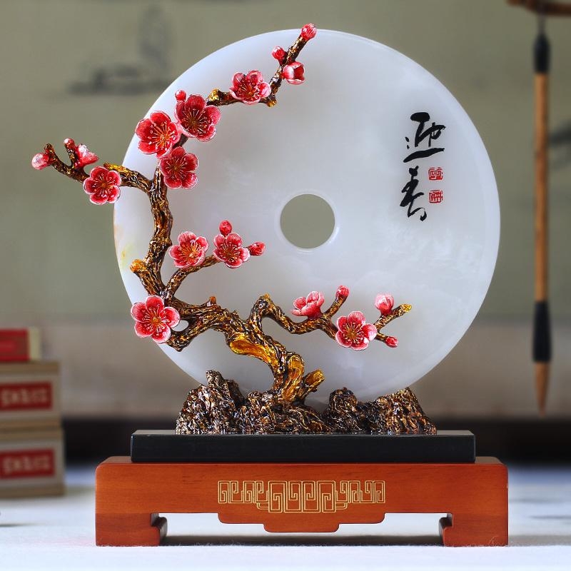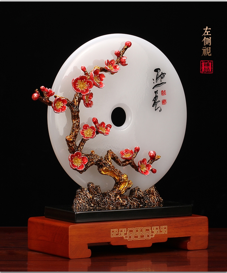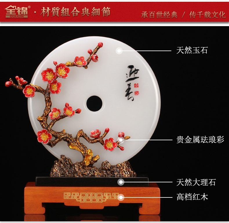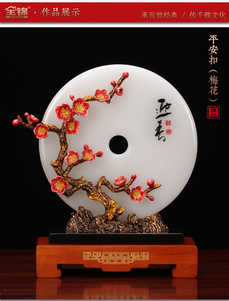 全锦 玉石平安扣吉祥桌面摆件富贵梅花