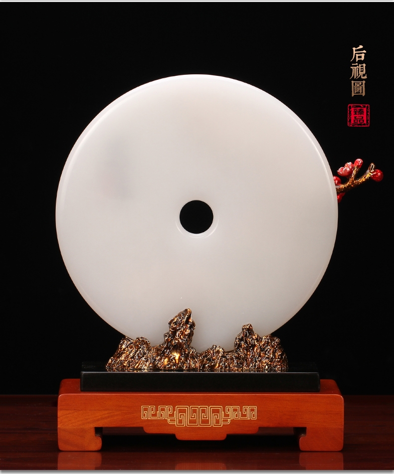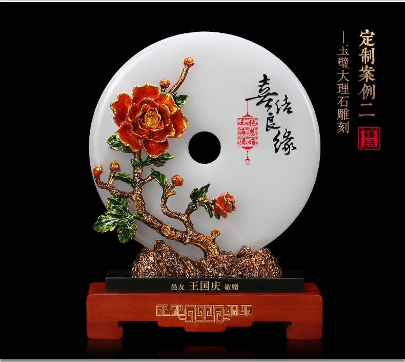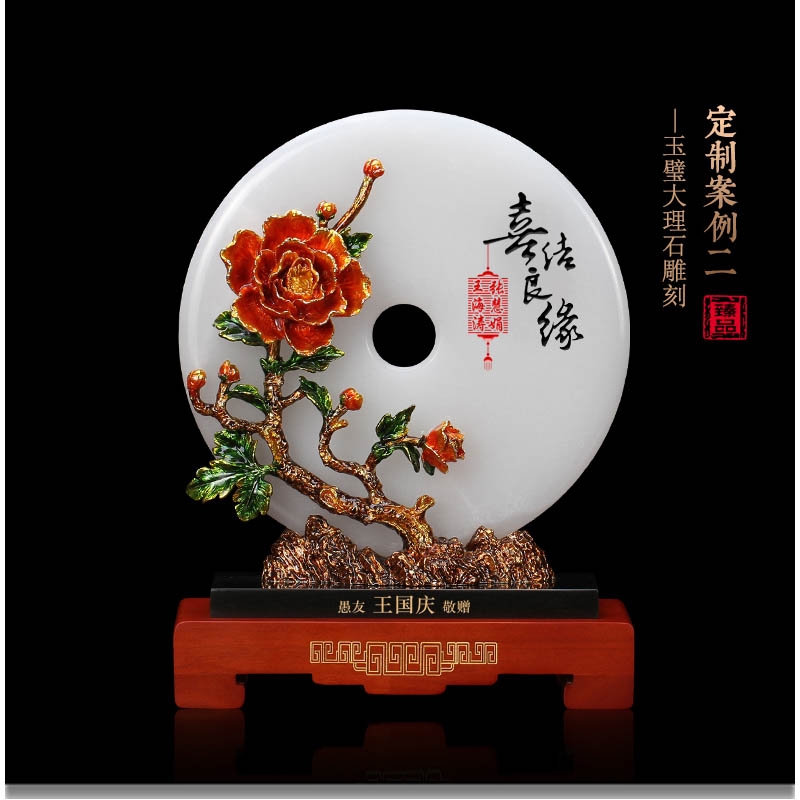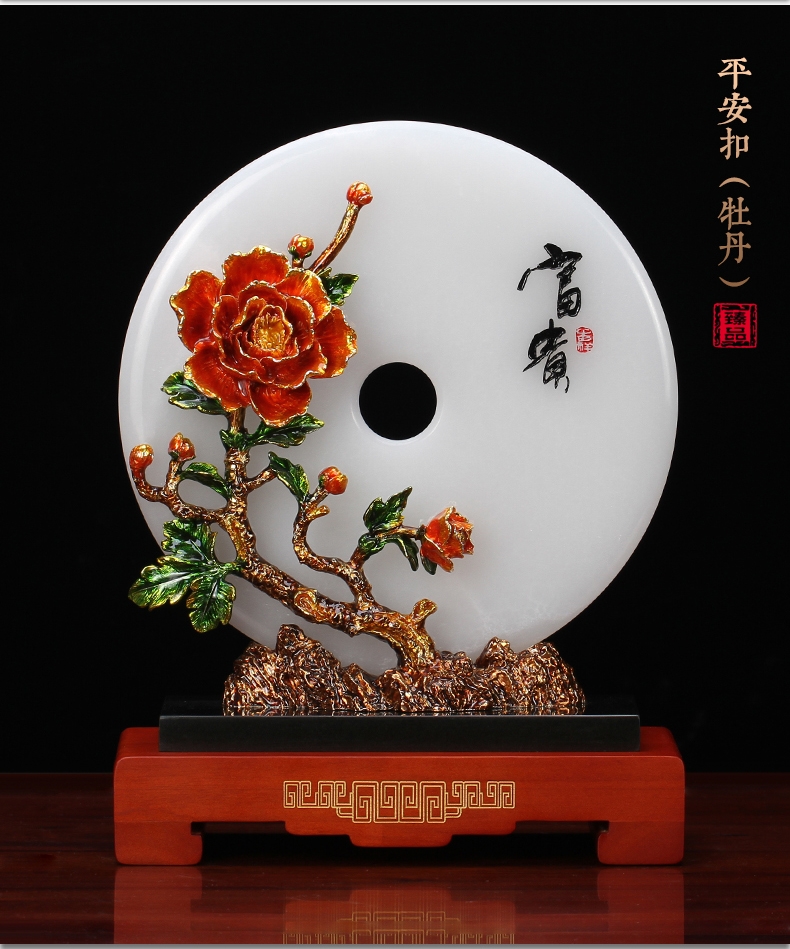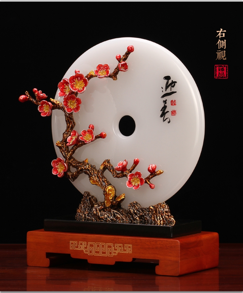 全锦 玉石平安扣吉祥桌面摆件富贵梅花