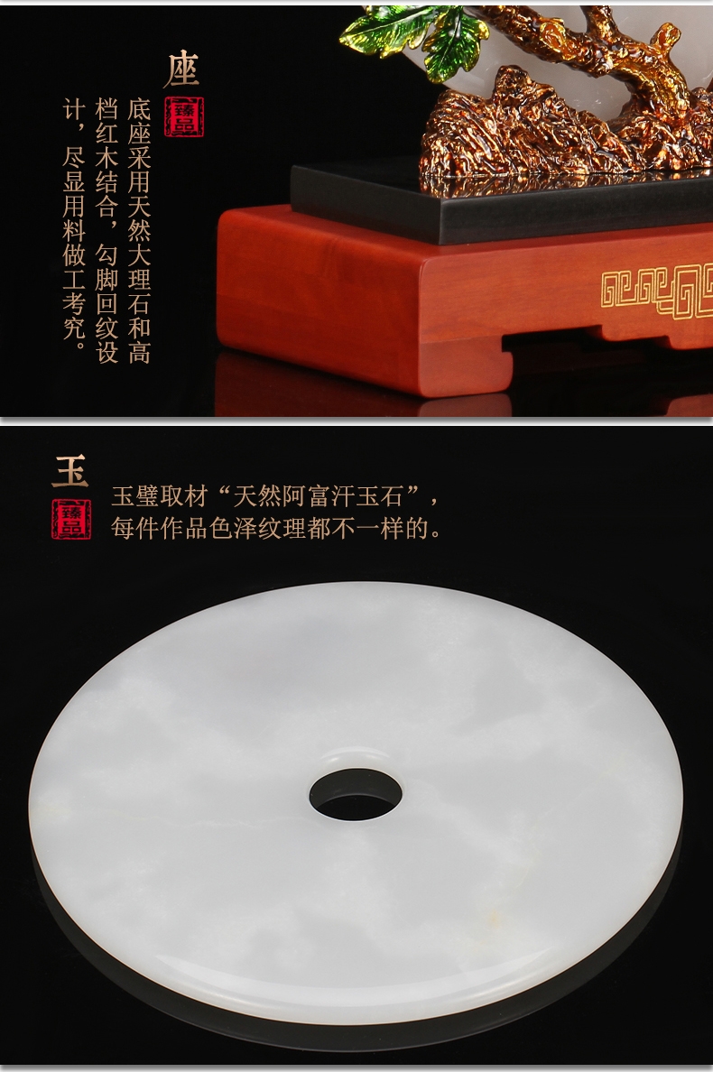 材质:阿富汗玉石+珐琅彩+大理石+实木底座