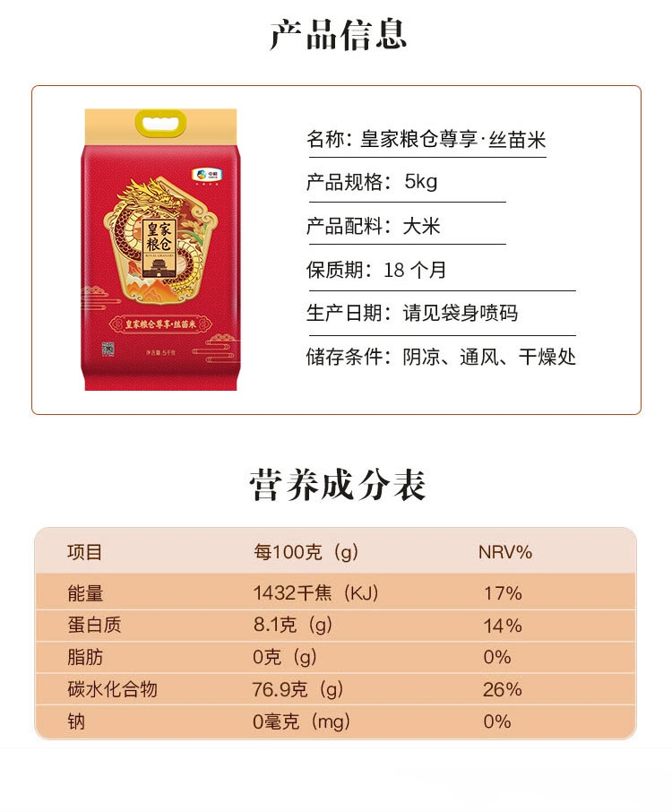 皇家粮仓 中粮尊享丝苗米5kg