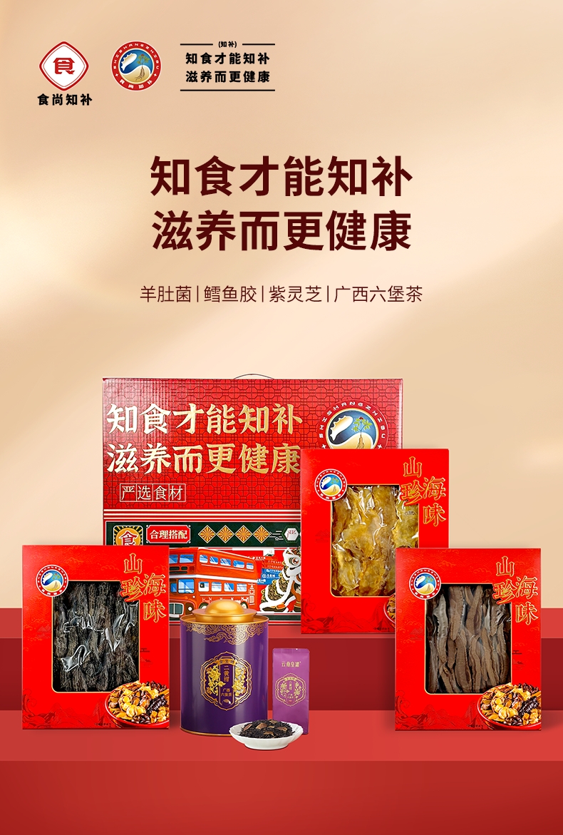 精选阳光晒制的二黄柑广西六堡果茶, 柑香与茶韵交融;坦桑尼亚黄花鱼胶核心产区 胶身足干通透,纹理清晰;羊肚菌剪脚去柄,手工除尘,无泥沙,无杂质