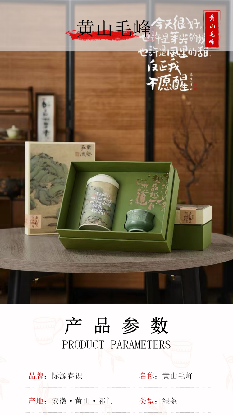 一杯黄山韵,礼赠天下春;晨起一杯醒神,午后一盏静心;源自黄山核心产区,天然云雾滋养