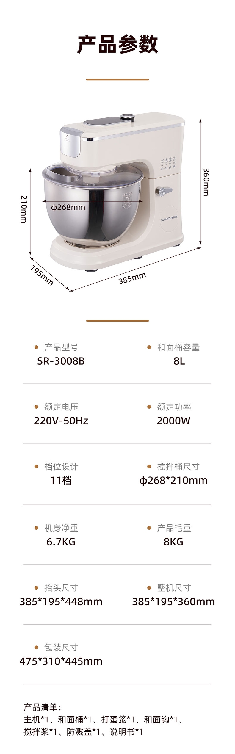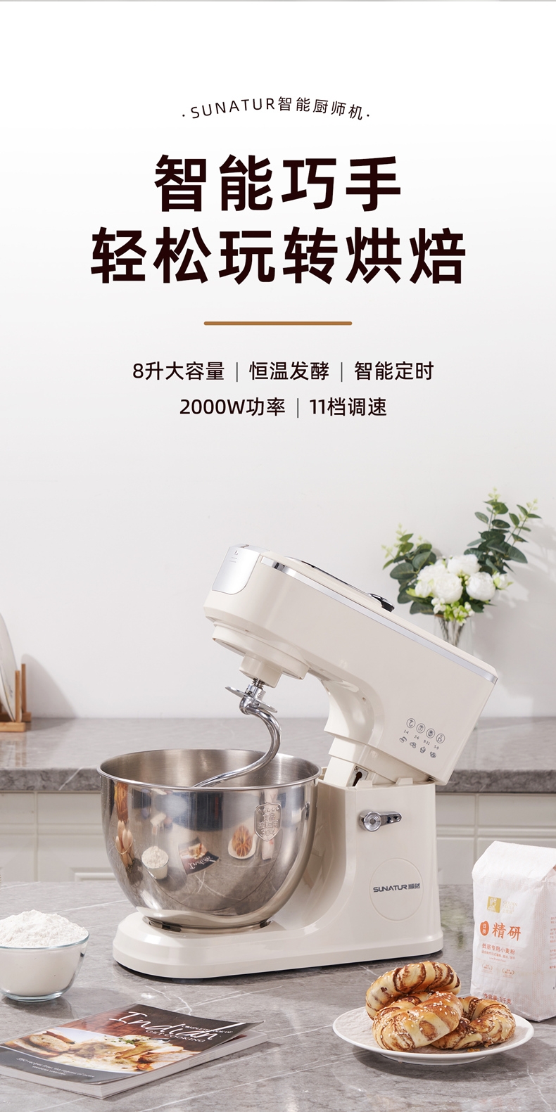 顺然 定时发酵厨师机8L触控标配款SR-3008B