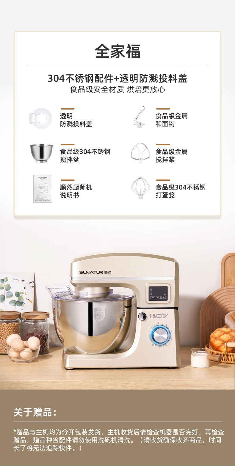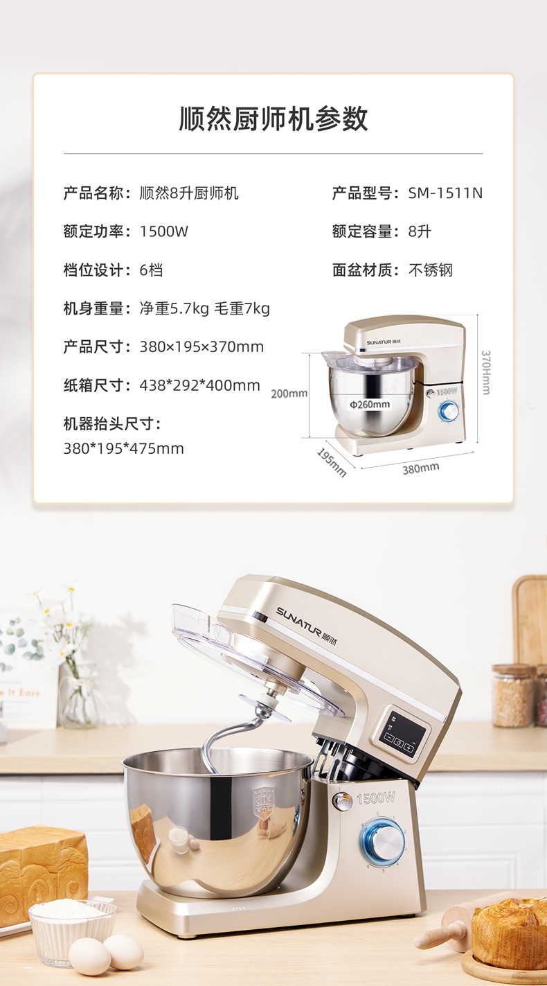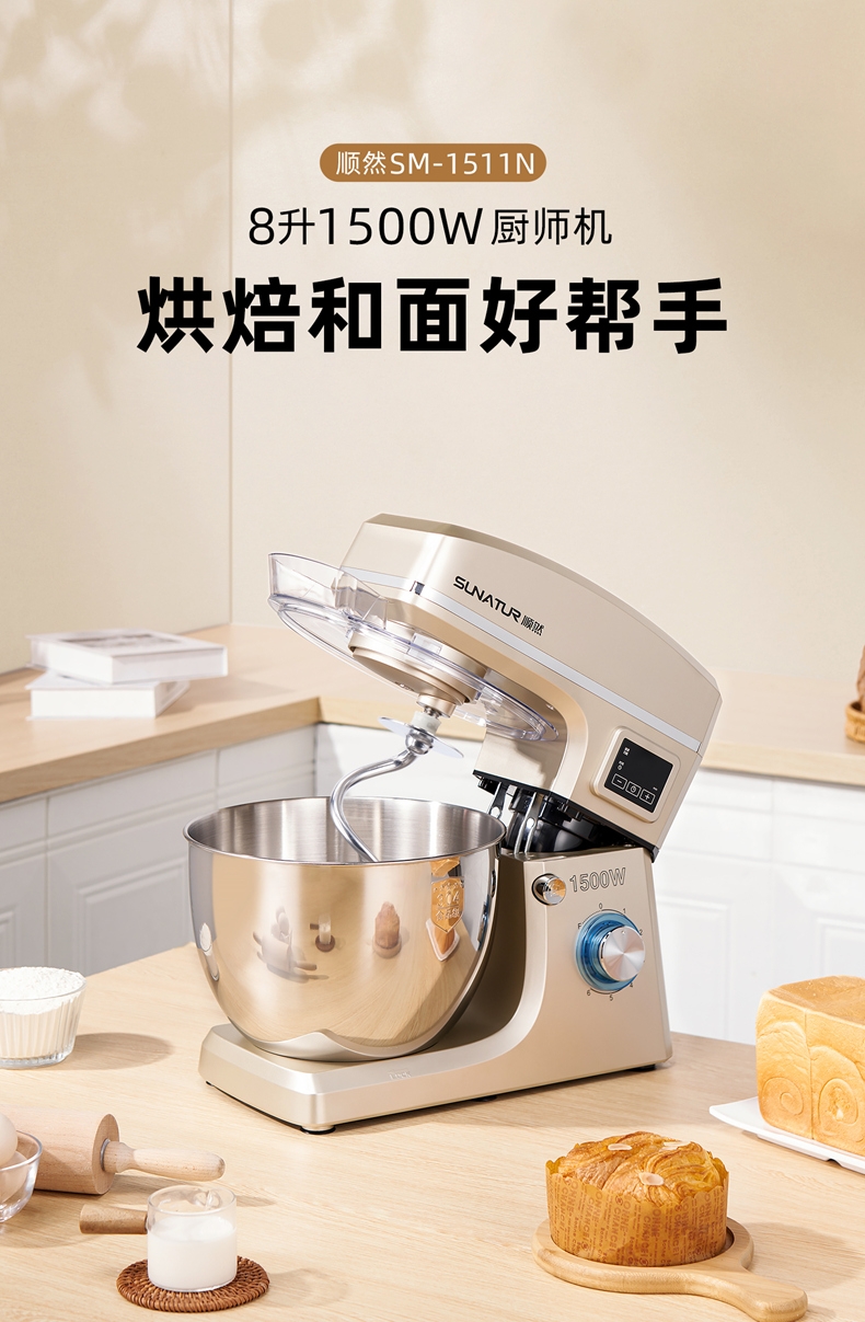 顺然 大容量定时发酵厨师机8LSM-1511NL