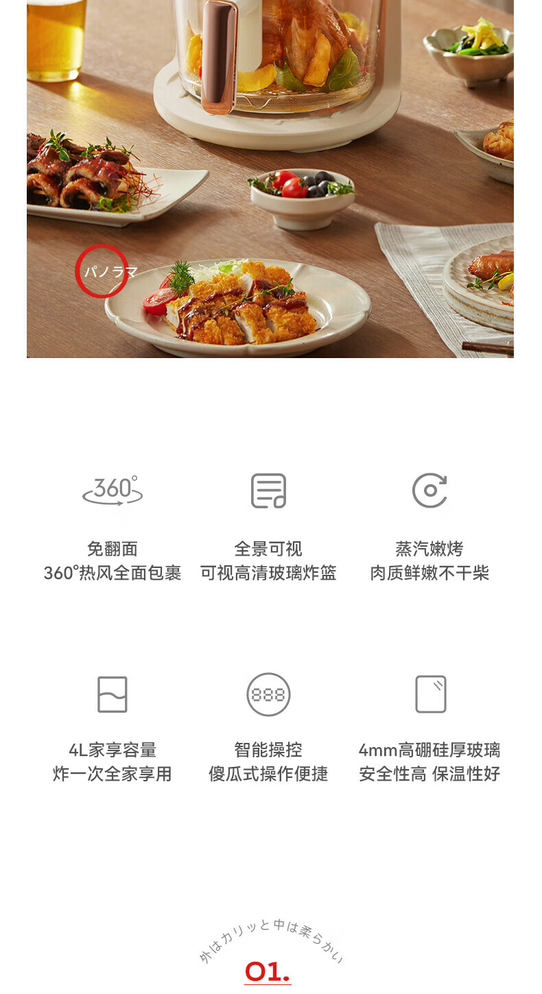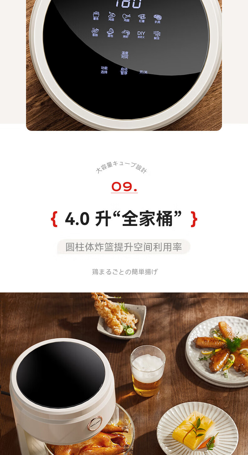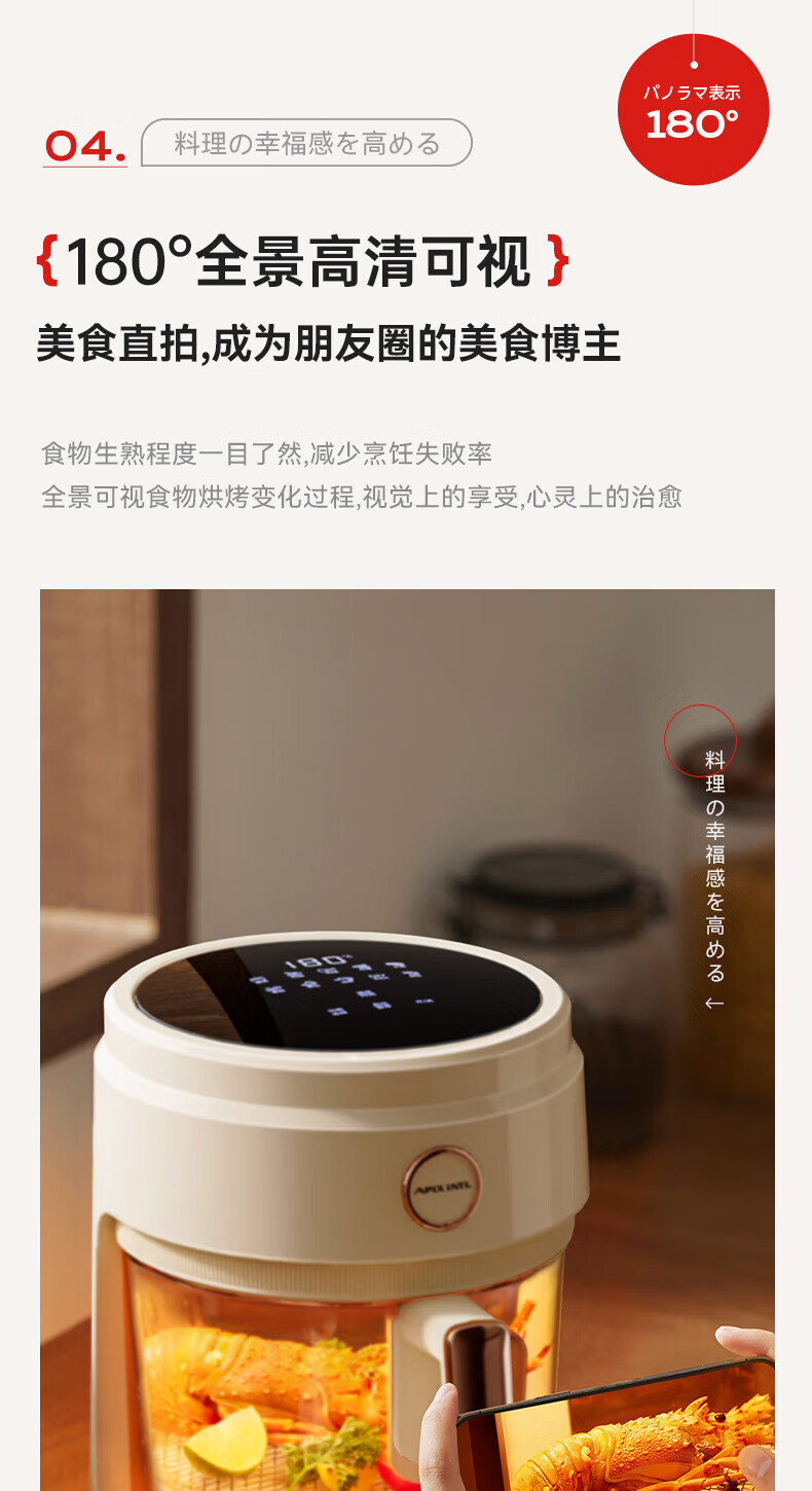 安本素 空气炸锅可视窗口4LAPIX-AFD12
