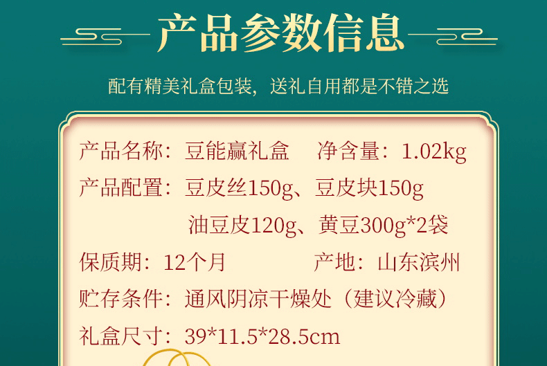 产品配置:豆皮丝150g,豆皮块150g,油豆皮120g,黄豆300gx2袋