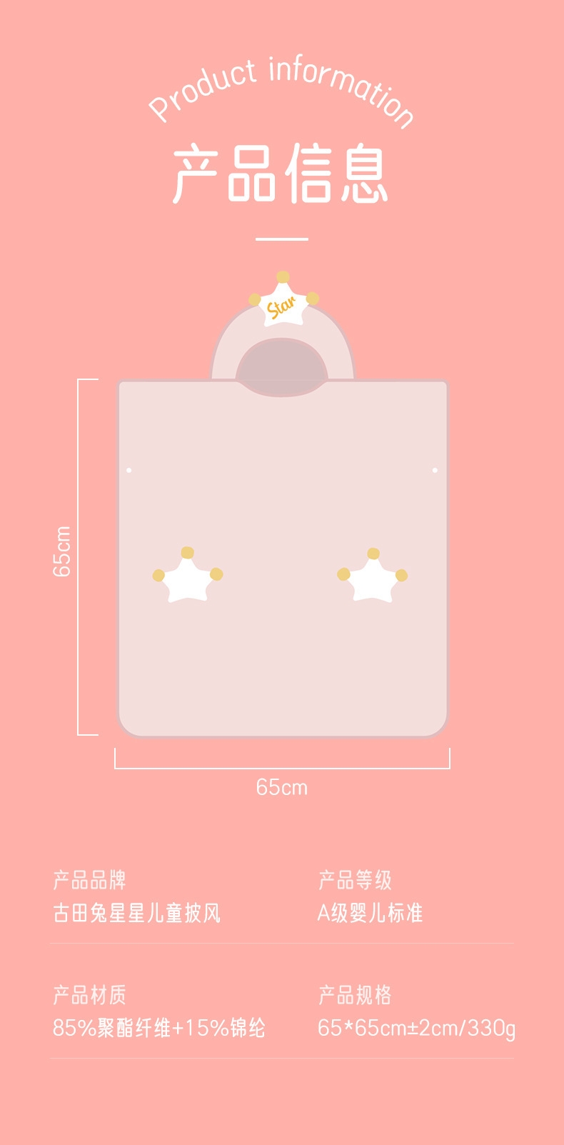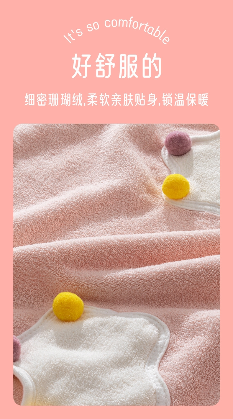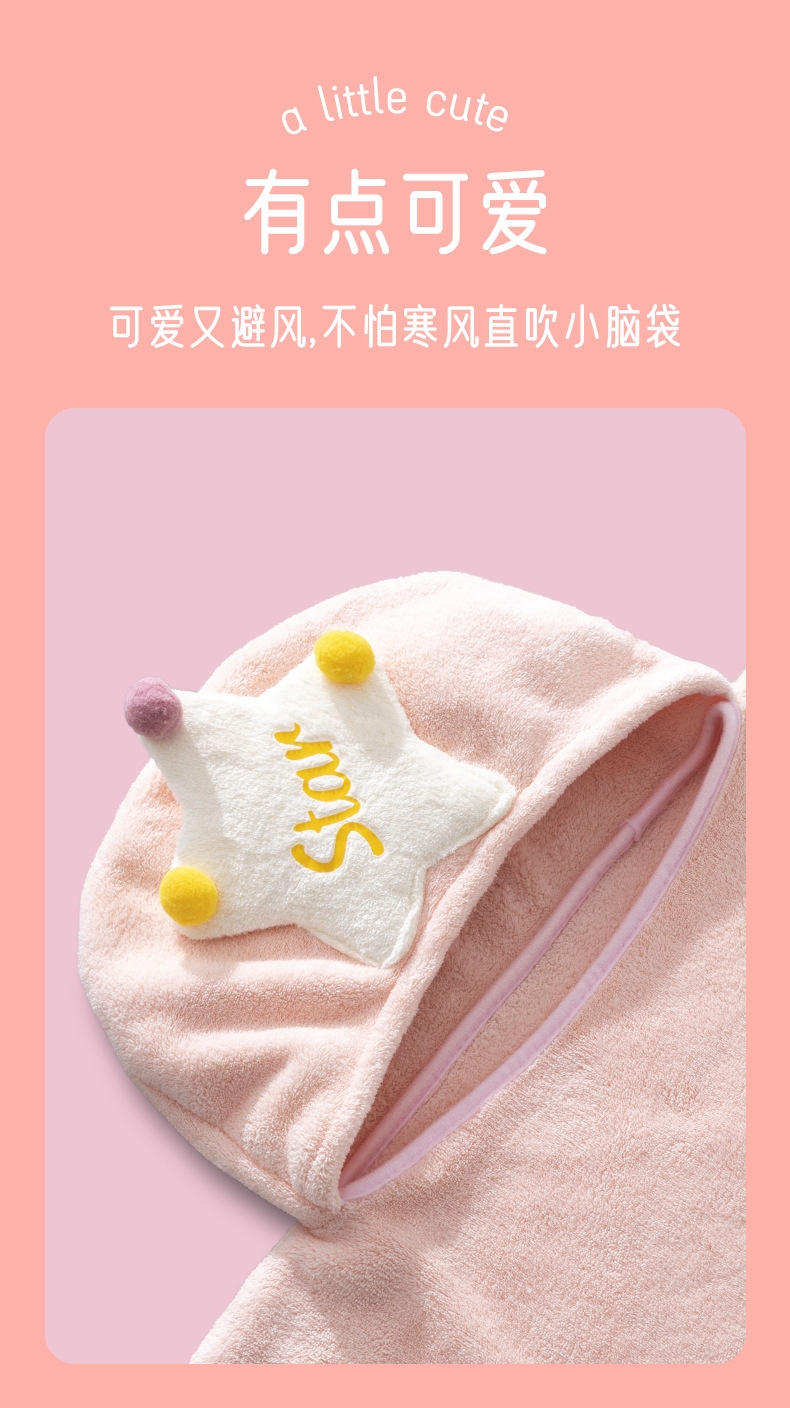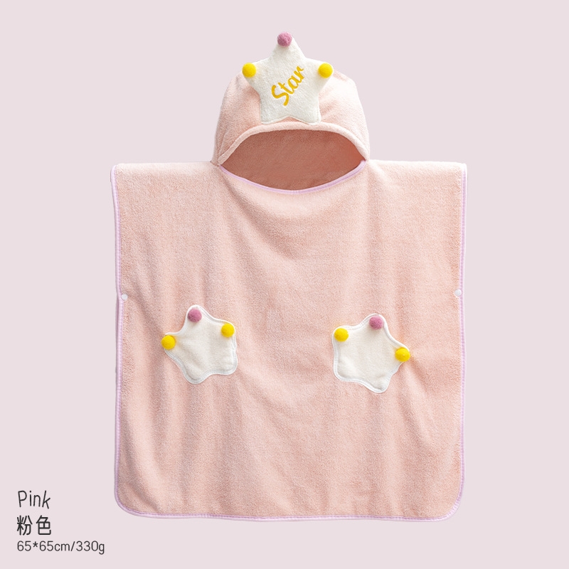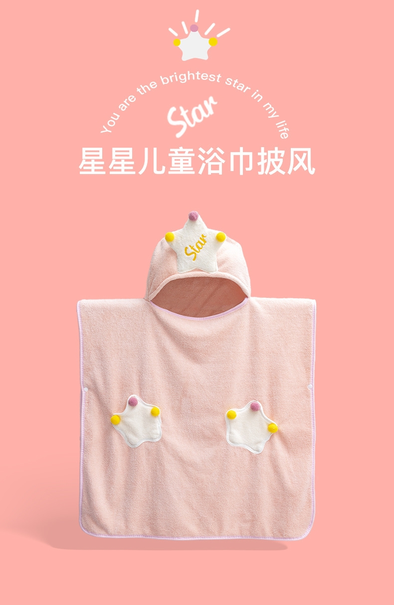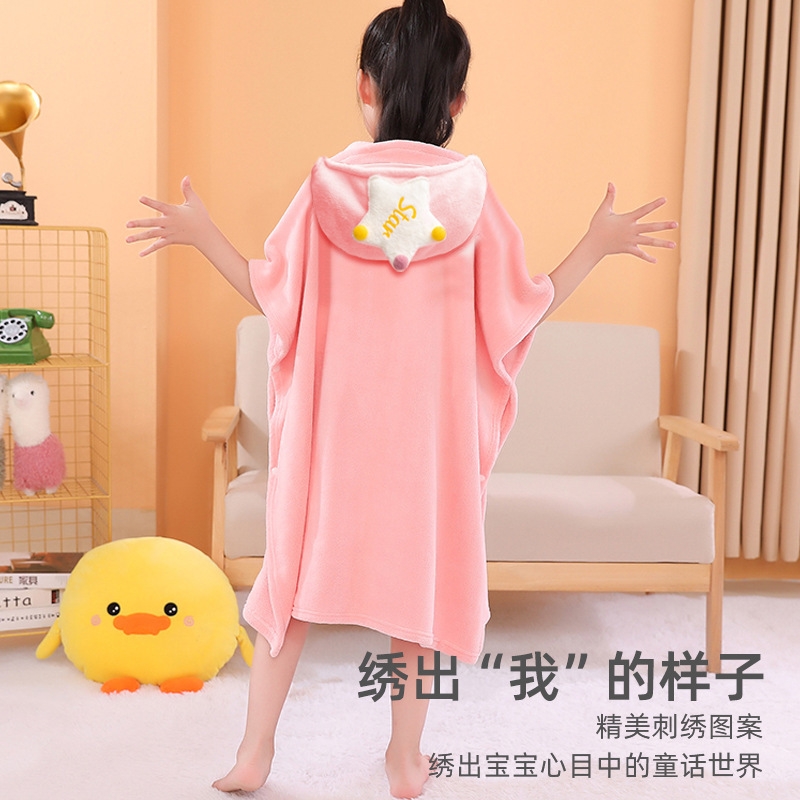 奥来纯 儿童卡通星星斗篷珊瑚绒加厚吸水