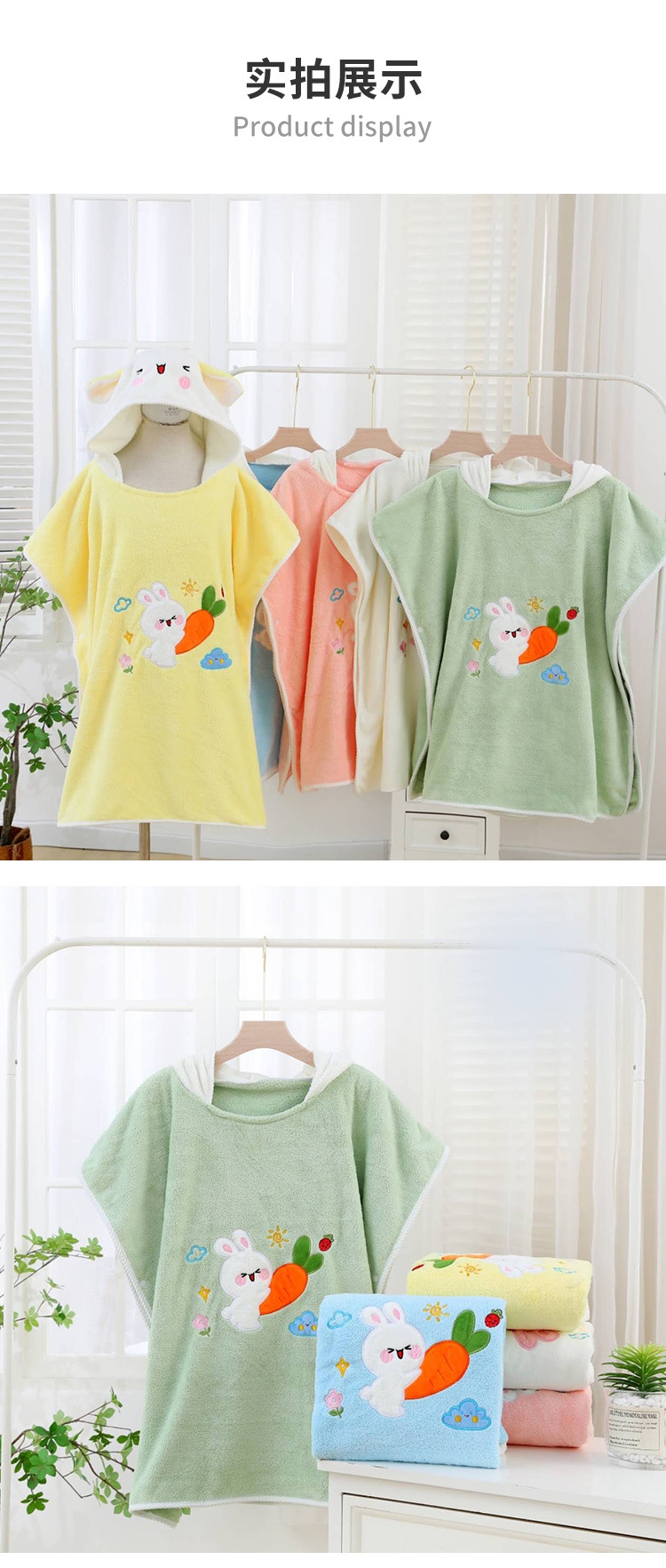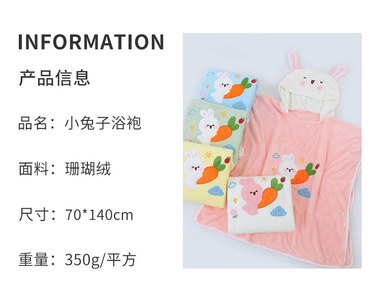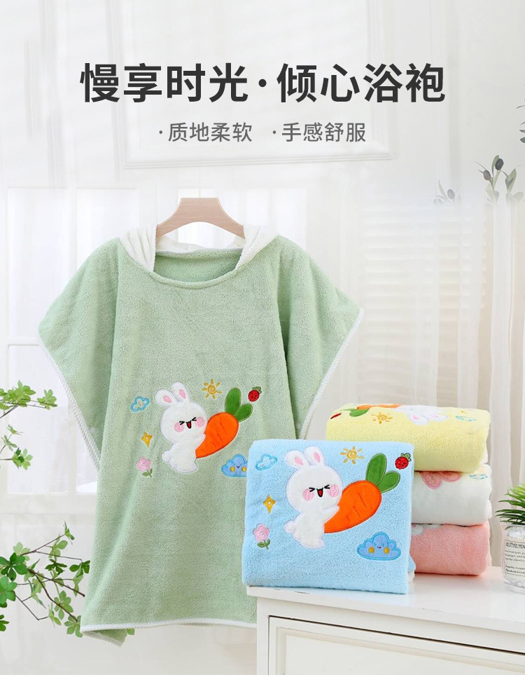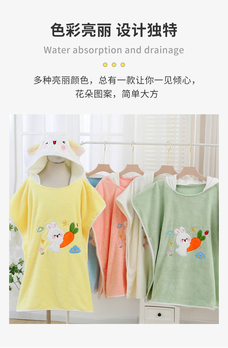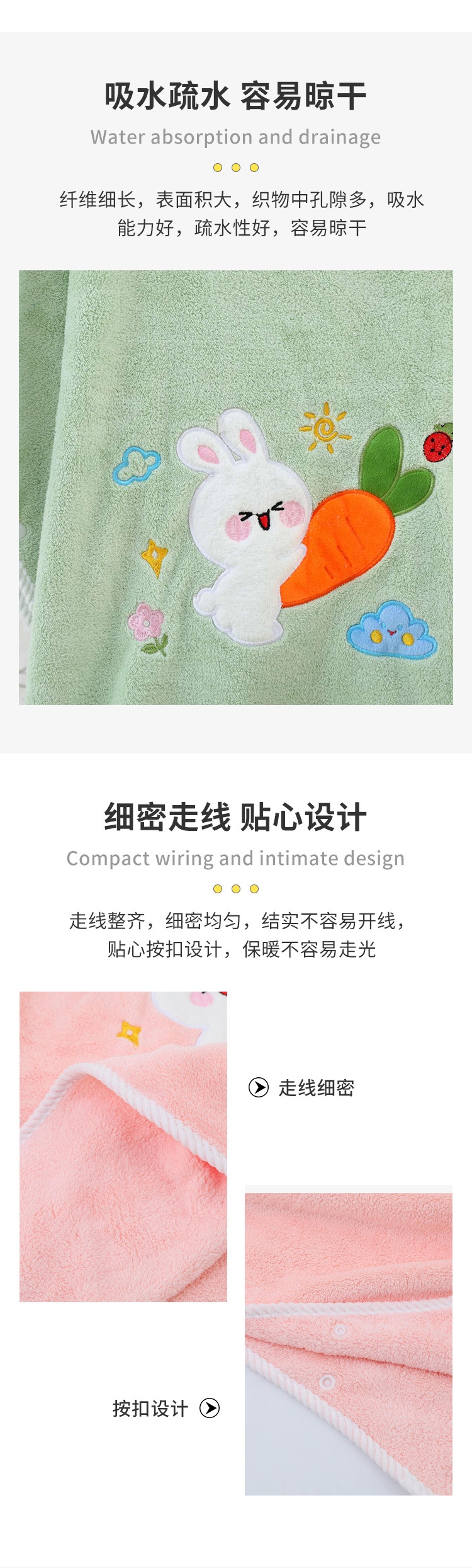 奥来纯 萝卜兔浴袍可穿浴巾吸水带帽斗篷