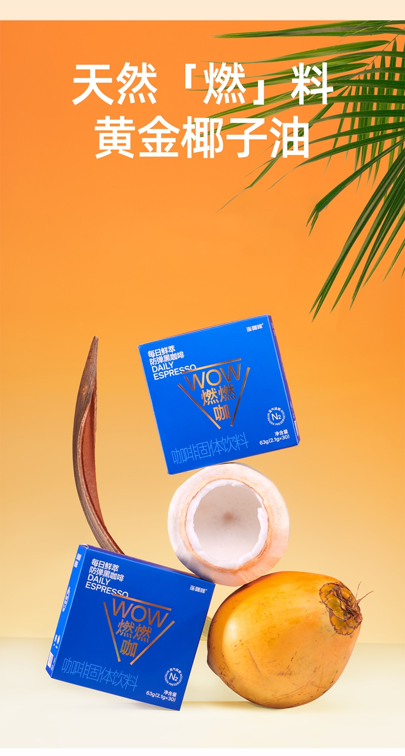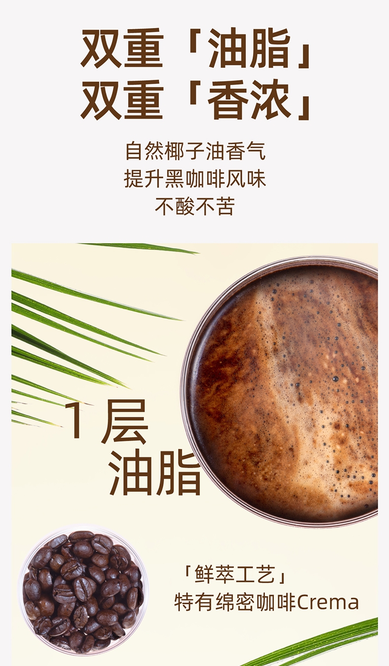 MCT与黄金椰子油组合;美味黑咖啡;独立小袋设计,小巧便携