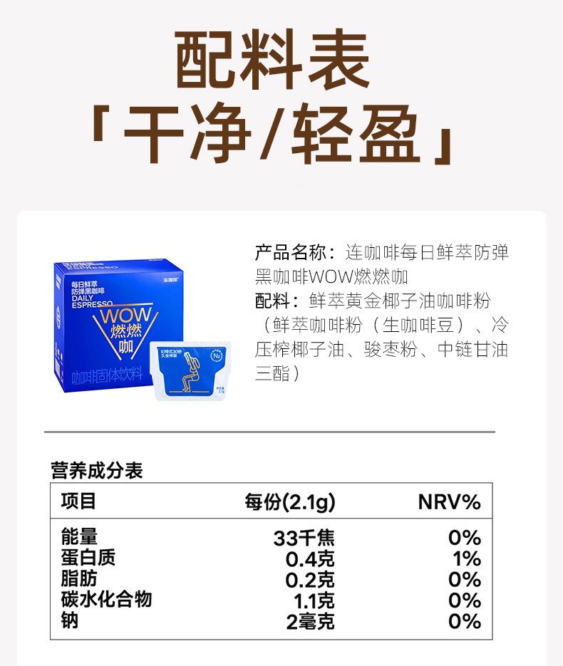连咖啡 防弹黑咖啡WOW燃燃咖