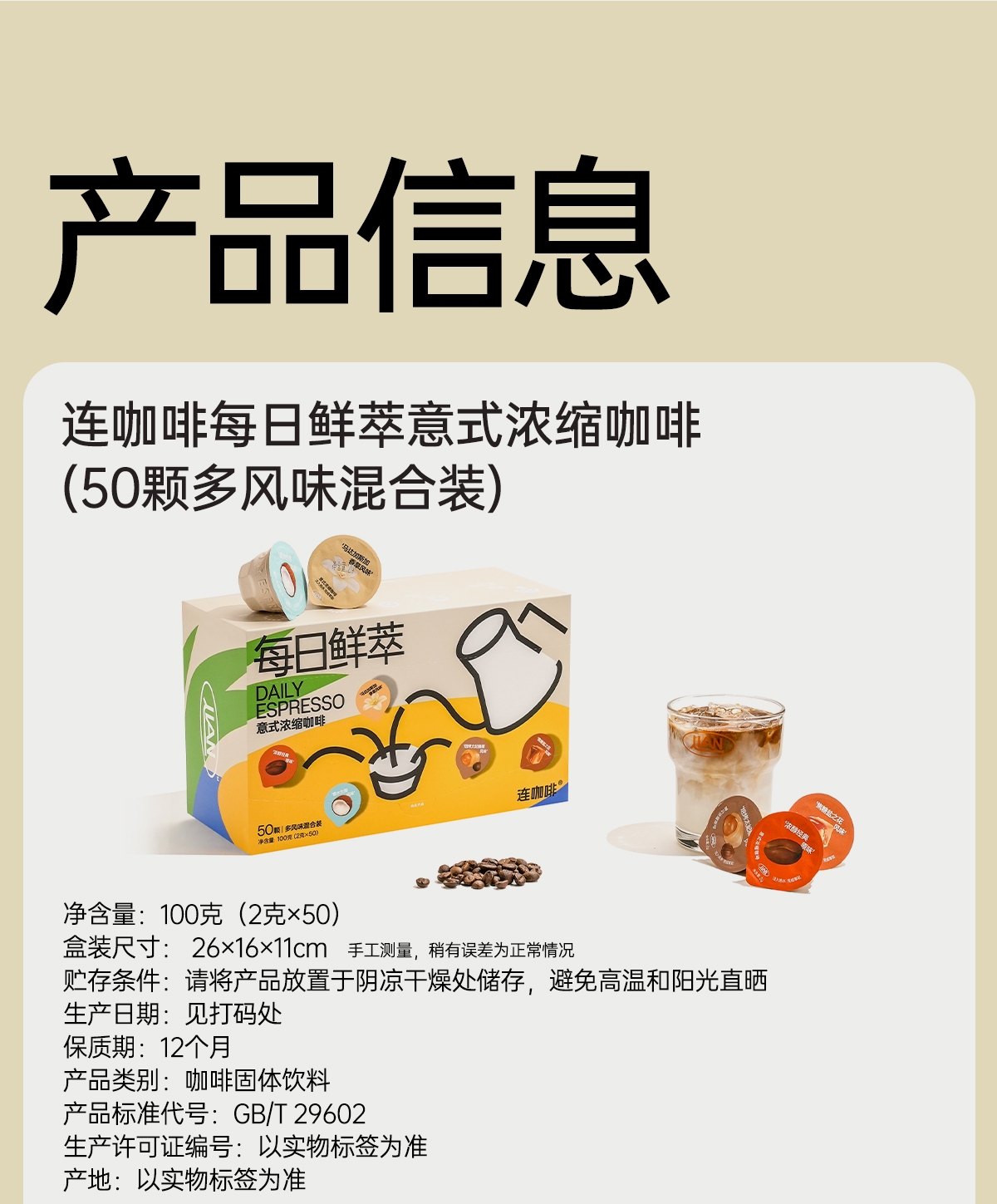 连咖啡 每日鲜萃意式浓缩咖啡50颗装