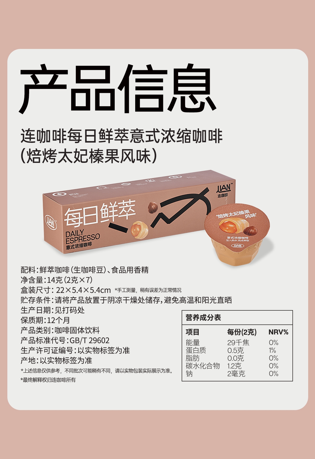 连咖啡 每日鲜萃意式浓缩咖啡太妃榛果